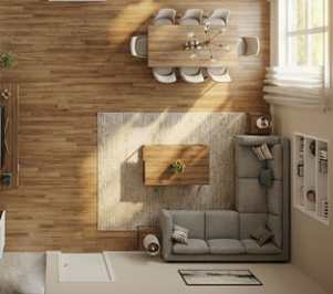 transform this 2d floor plan into a realistic interior perspective elevation as if standing inside the space at human eye level 5 6 height convert walls doors windows and openings into full 3d architectural elements apply a clean modern interior design style with neutral tones light oak wood flooring white walls minimal trim large windows with natural daylight soft indirect lighting modern recessed ceiling lights simple contemporary furniture and minimal decor photorealistic rendering soft shadows global illumination high resolution architectural visualization ultra realistic materials balanced exposure