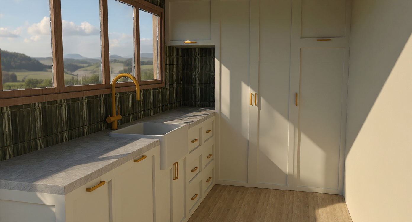 change white stone peaks to black shou sugu ban siding maintain all other colors add landscaping oaks trees and stagged concrete walkway