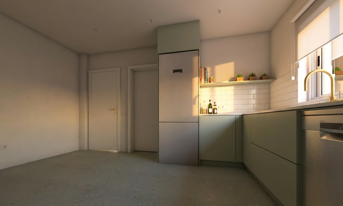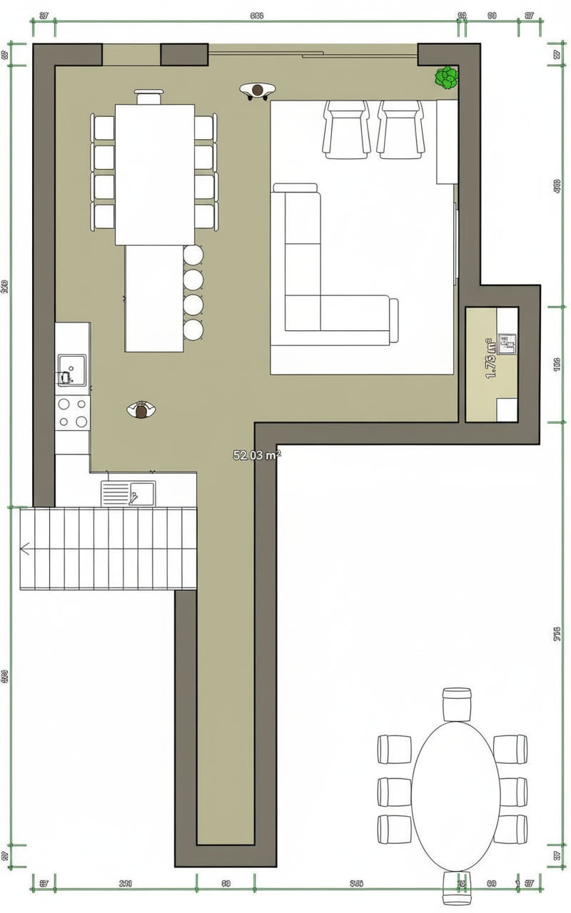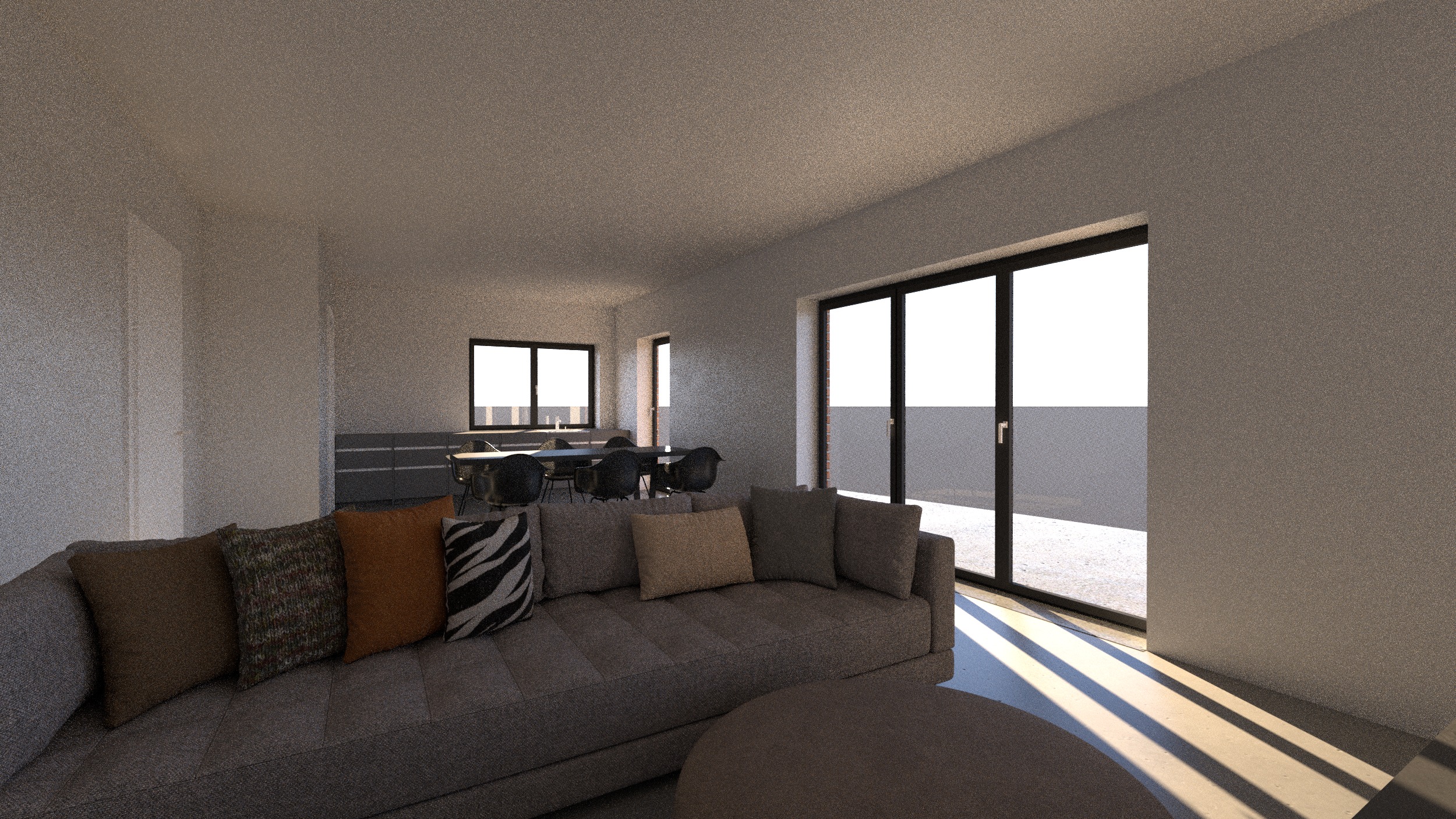 core instruction highest priority convert the provided prerender into an ultra photorealistic architectural photograph while preserving the architecture exactly as in the input image critical constraint the following must remain 100 unchanged architecture geometry floor plan walls and openings windows and doors ceiling heights camera position perspective spatial proportions do not redesign or reinterpret the architecture only enhance materials lighting furnishing and photographic realism interior scene the image shows the interior of a modern german single family house einfamilienhaus with calm high end contemporary interior design the atmosphere should resemble professional editorial architectural photography similar to architectural digest materials bright natural oak plank flooring light oak wood floor with subtle natural grain and color variation matte finish with realistic micro reflections additional materials matte white interior walls natural oak accents linen and wool fabrics light natural stone surfaces brushed metal details all materials must show natural imperfections and micro texture interior styling elegant minimalist contemporary residential interior important constraints no indoor plants only a few carefully selected framed artworks on the walls calm and uncluttered styling furniture large sofa in the foreground sofa upholstered in bright light colored premium fabric extremely realistic textile rendering subtle natural fabric folds and texture elegant contemporary design lighting fixtures white recessed ceiling downlight spots evenly and regularly distributed across the ceiling minimalistic architectural integration lighting scenario warm summer morning sunlight soft natural sunlight entering through windows long soft shadows realistic daylight atmosphere lighting characteristics physically correct daylight 5200 5600k natural global illumination realistic light bounce across surfaces exterior visible through windows typical german suburban single family housing neighborhood exterior environment neighboring detached houses brick fa ades klinker facades typical for german houses houses partially obscured by trees and shrubs garden elements well maintained green lawn terrace with outdoor furniture weber grill on the terrace natural garden vegetation the exterior should feel authentic and naturally integrated with the lighting of the interior architectural photography style professional architectural editorial photography camera characteristics full frame professional camera 24 35mm architectural interior lens tripod mounted perfectly straight vertical lines image characteristics natural hdr exposure subtle depth of field realistic reflections in glass surfaces balanced contrast and natural color grading the final result should look like a real architectural magazine photograph ultra realism details include subtle micro details that increase realism minimal dust particles visible in sunlight realistic glass reflections slight variation in wooden floor planks subtle material imperfections natural fabric wrinkles on the sofa rendering quality extreme photorealism physically based rendering ray traced reflections global illumination ultra detailed textures 8k architectural photography realism the final image must be indistinguishable from a real photograph negative prompt anti cgi avoid cgi look artificial lighting plastic looking materials unrealistic reflections overly perfect surfaces exaggerated hdr stylized interiors indoor plants cluttered decoration distorted geometry changed architecture altered floor plan low resolution textures cartoon or illustration style