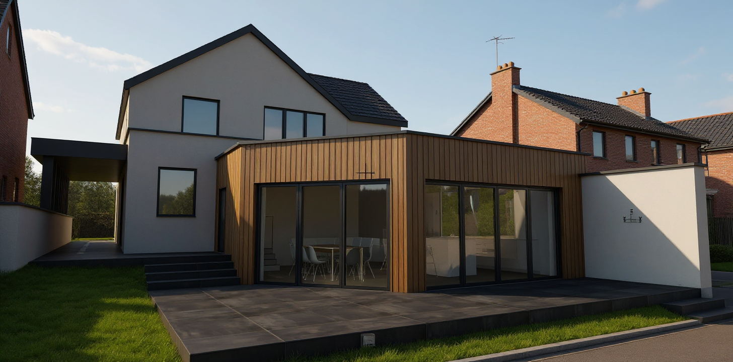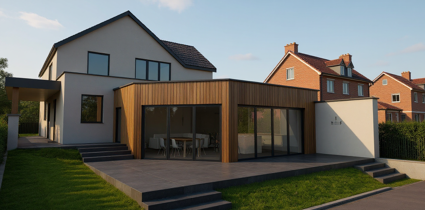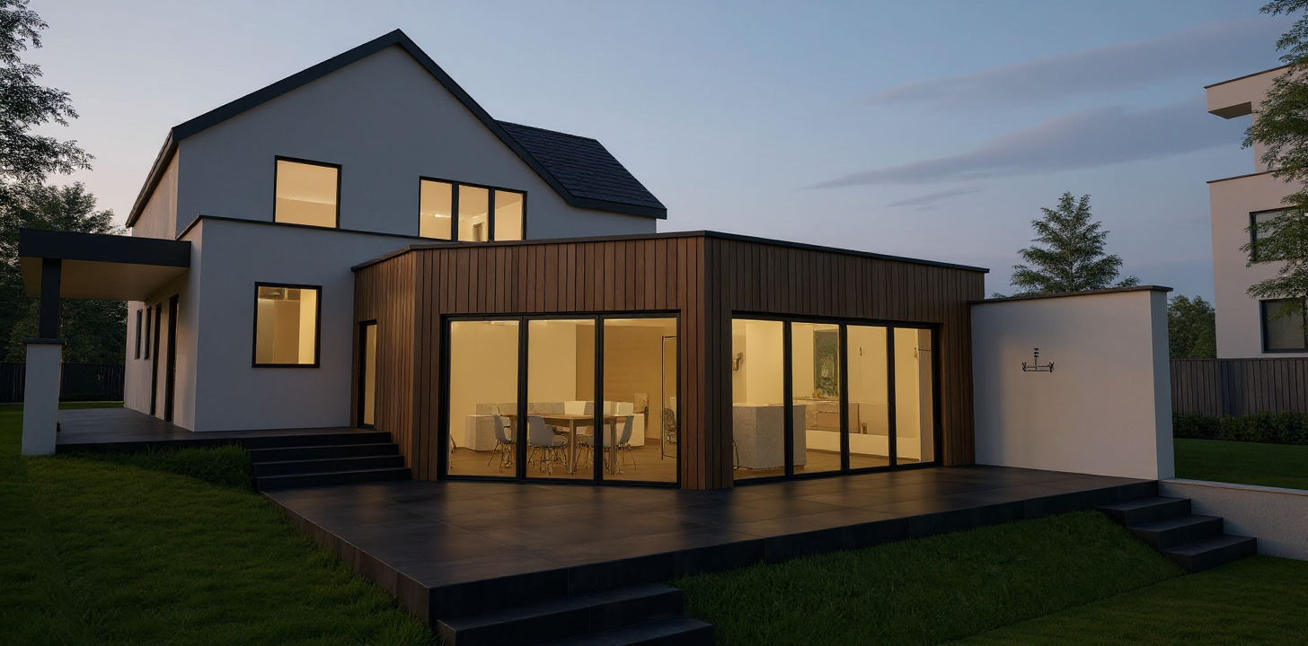 please show a cozy japanese garden in front of the fence with a small waterfall flowing between stones japanese maples and beautiful colorful hydrangeas there should be a green and gravel part with a small stone path leading to the japanese garden do not put a pond in it the japanese garden should not fill the entire garden it should be friendly and peaceful