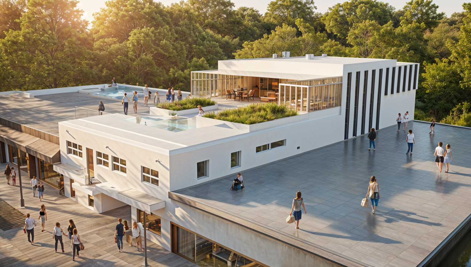 add fire pits around the plaza with chairs around them