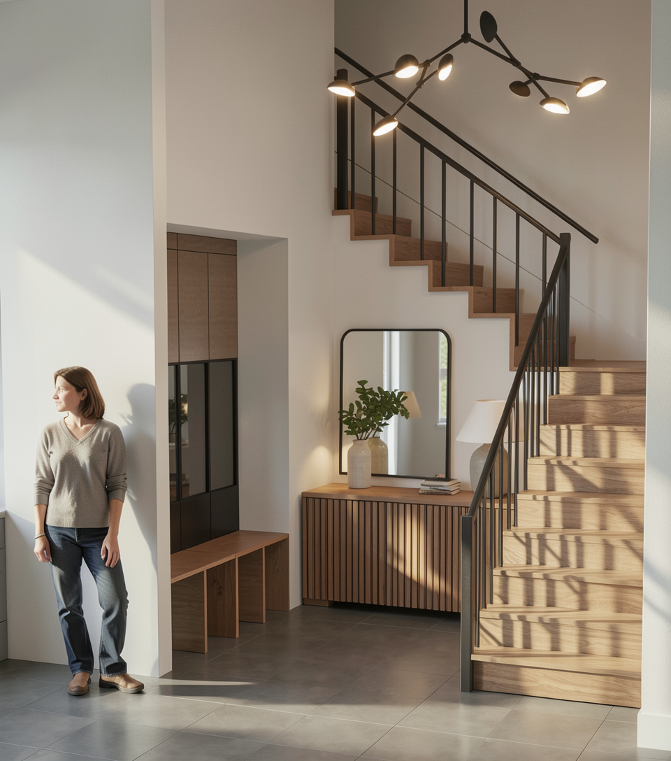 render photo realistic dont change anything can you add a carpet runner on the stairs modern