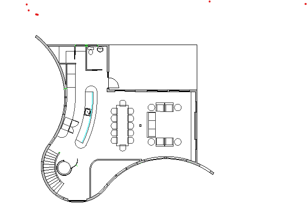 second floor plan show exterior roof deck opening to first floor glass elevator stairs going down to first floor chef at the kitchen guests dining and some watching the flat screen tv