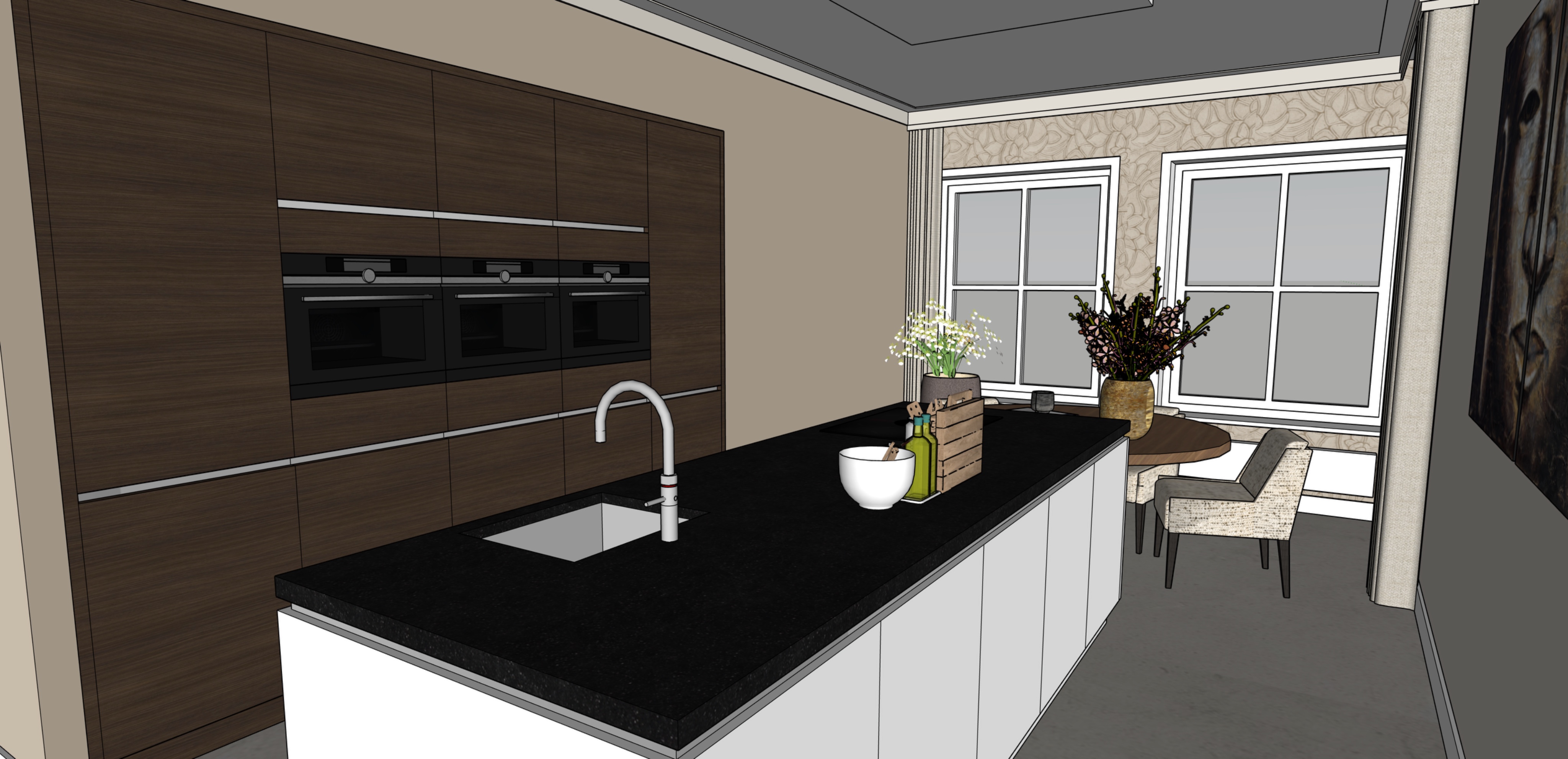 render of 3d model natural light coming trough the windows