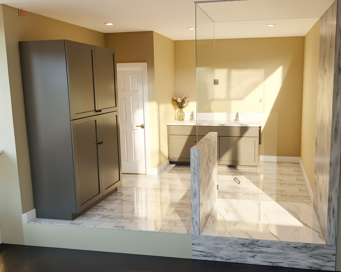 render a modern two story house with a steep gable roof and a separate garage both featuring dark charcoal gray siding the roof is forest green with rustic wood tones for the trims creating a warm contrast the front facade showcases large floor to ceiling windows with sleek black frames and a stone chimney in varying shades of gray for texture set in a verdant green lawn under a clear blue sky with soft natural daylight casting gentle shadows creating a peaceful and inviting atmosphere
