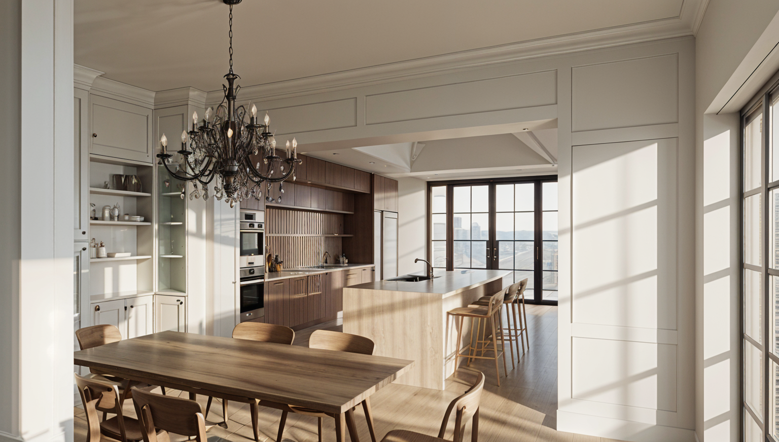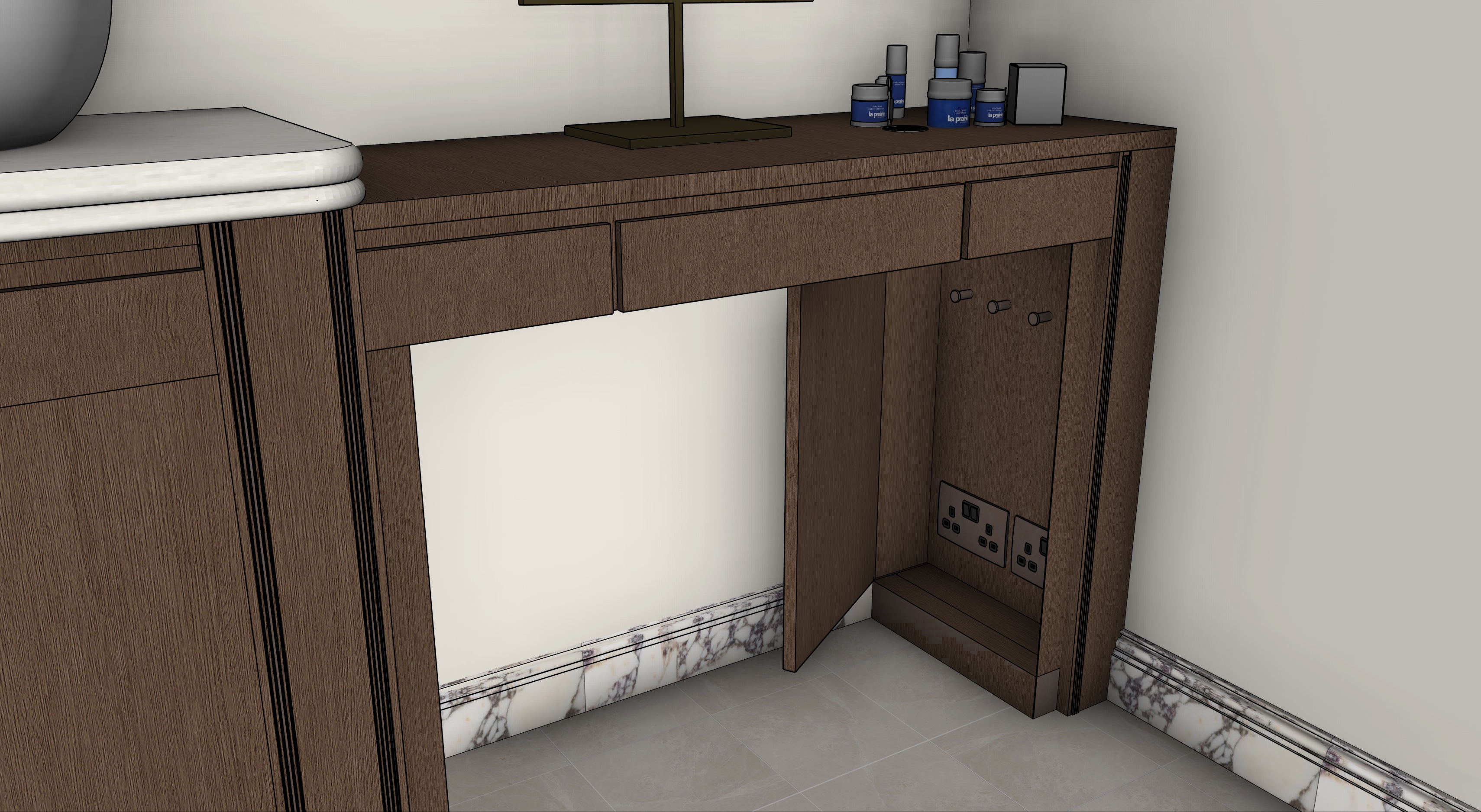 a photorealistic render of a luxurious ensuite for interior design clients the room is drenched in a neutral paint colour with natural sunlight