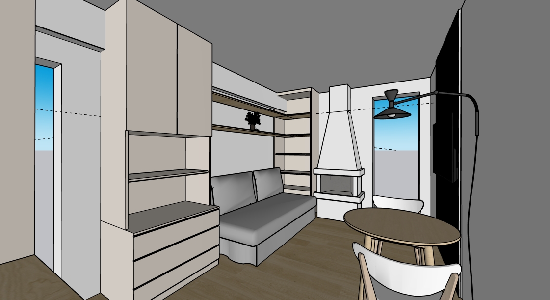 dammi una soluzione con disposizione arredi diversa