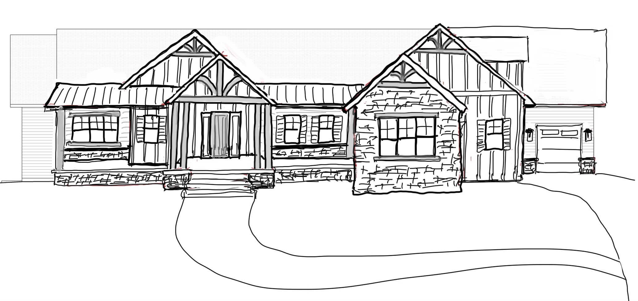 use lots of textures to render this exterior warm natural tones and whites make the roof dark make the landscaping look crisp and clean