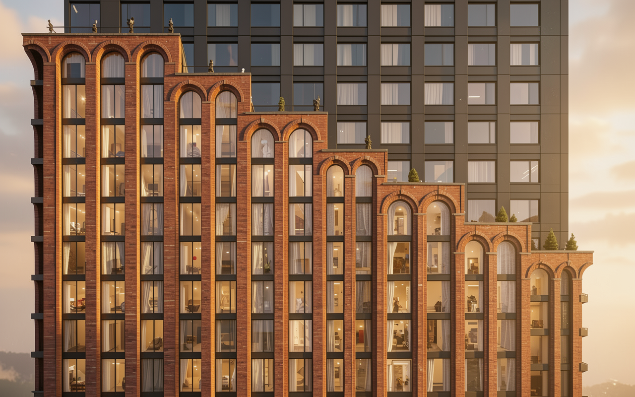 interior of a traditional bathroom wall covered in vertical large ceramic subway tile shower with glass door window above white cabinetry no faucet on cabinetry no mirror ceramic tile traditional floor maintain the scale of the drawing