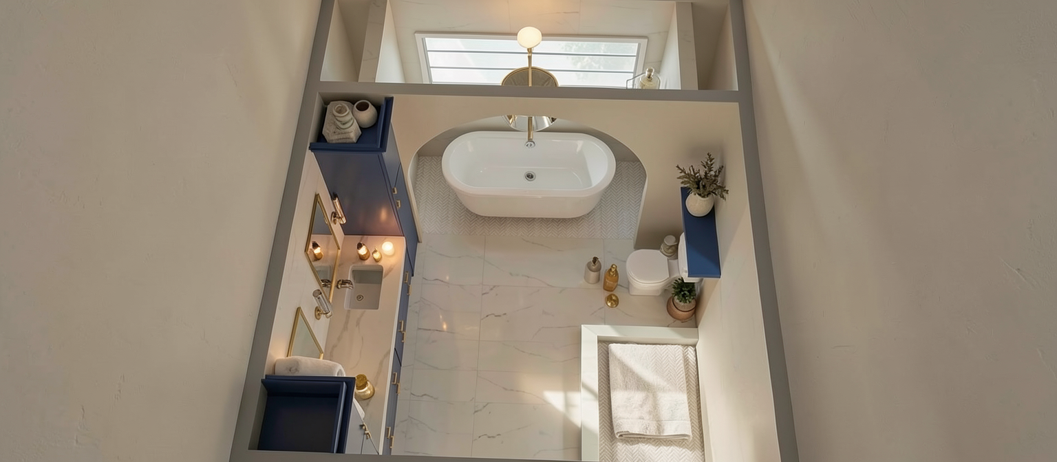 put long vases with eucalyptus on the toilet cistern don t change any else