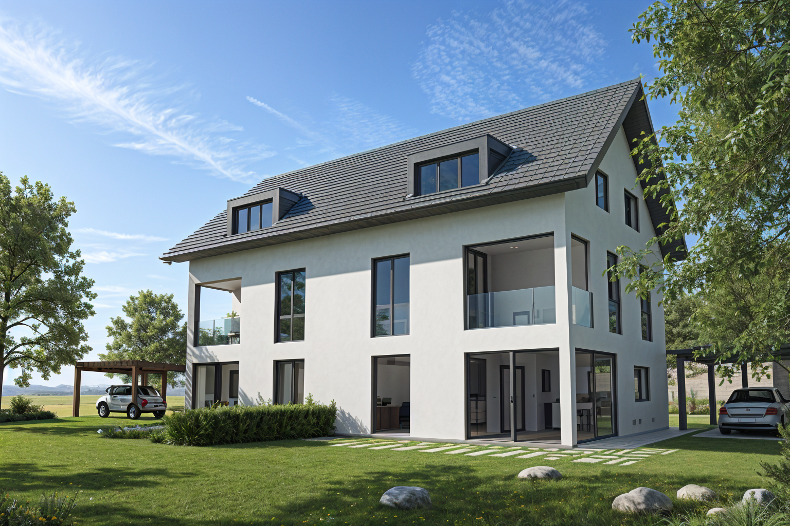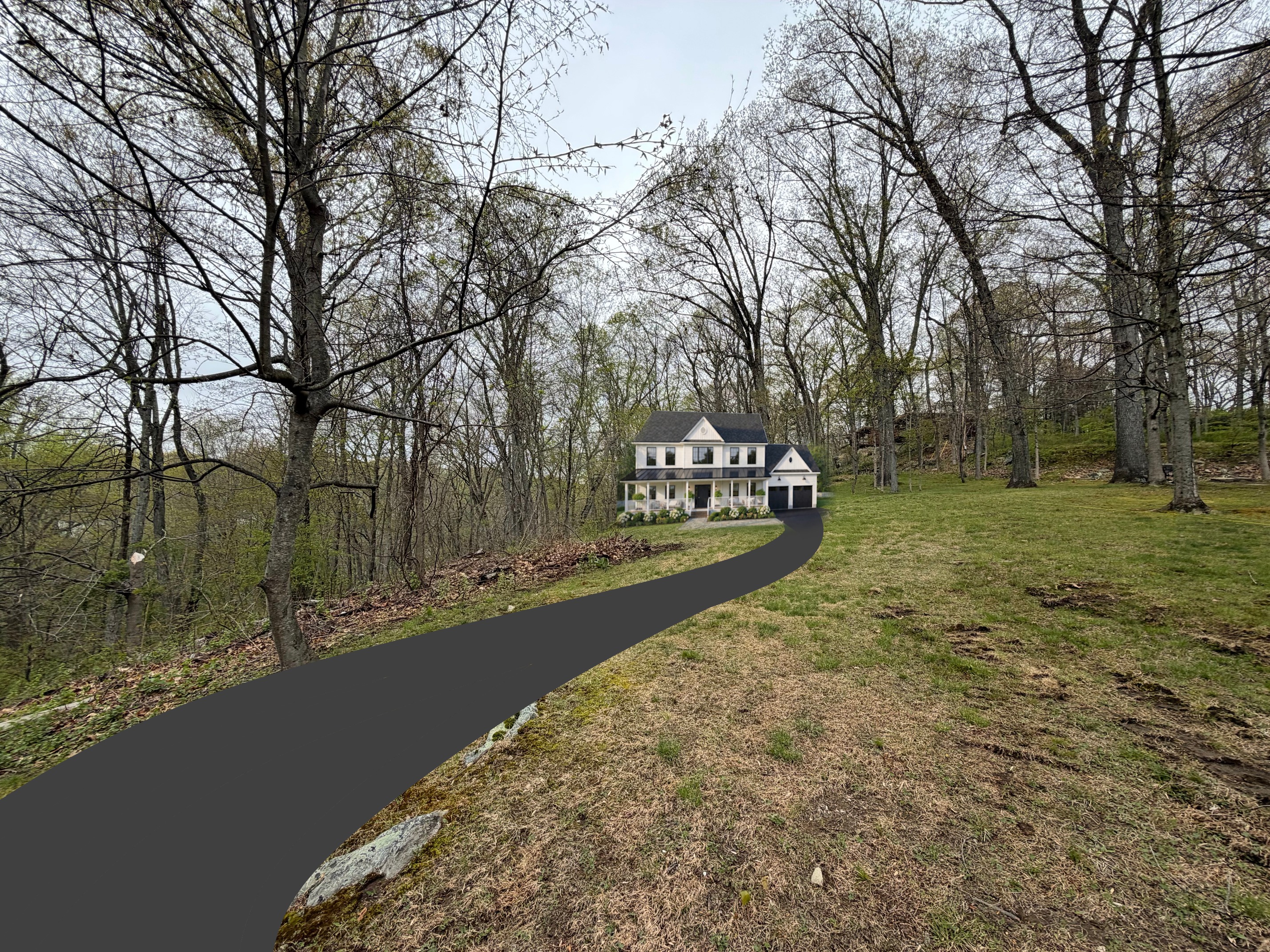 make this driveway and proposed house rendering more realistic