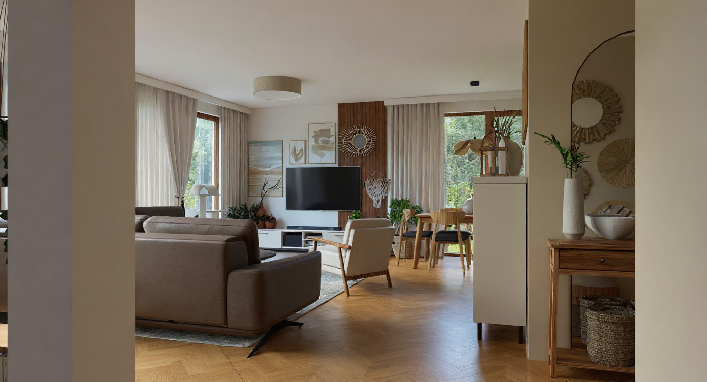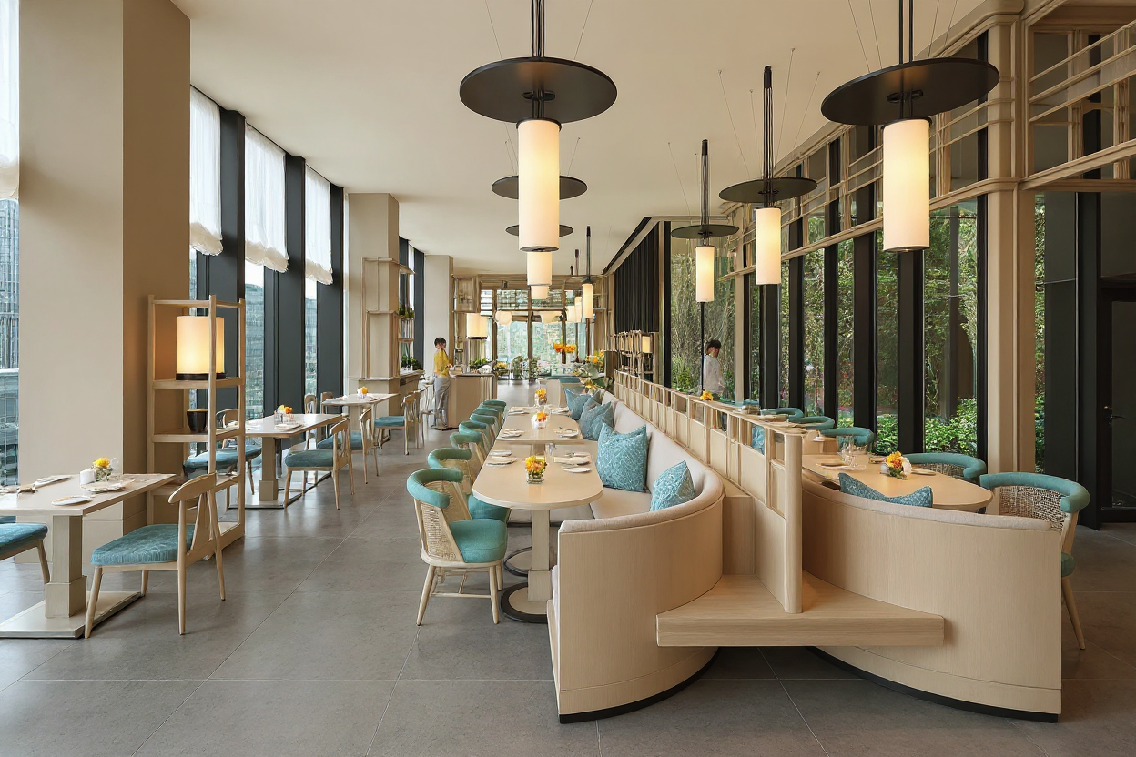 enhance the architectural drawing to blend seamlessly with its natural surroundings on the cliffs of labuan bajo the scene is set in a tropical forest environment overlooking the sea with soft morning light illuminating the landscape emphasize the harmony between architecture and nature lush greenery rocky cliff textures and distant ocean haze capture the tropical island ambience with misty air gentle sunlight filtering through trees and natural color tones that convey freshness calm and realism
