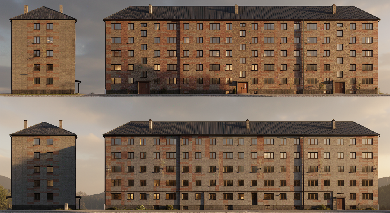 in the same shades as in the picture only more realistic no trees doors and windows as in the picture slightly darker shades than in the picture the lower facade is like in the picture there are no doors there