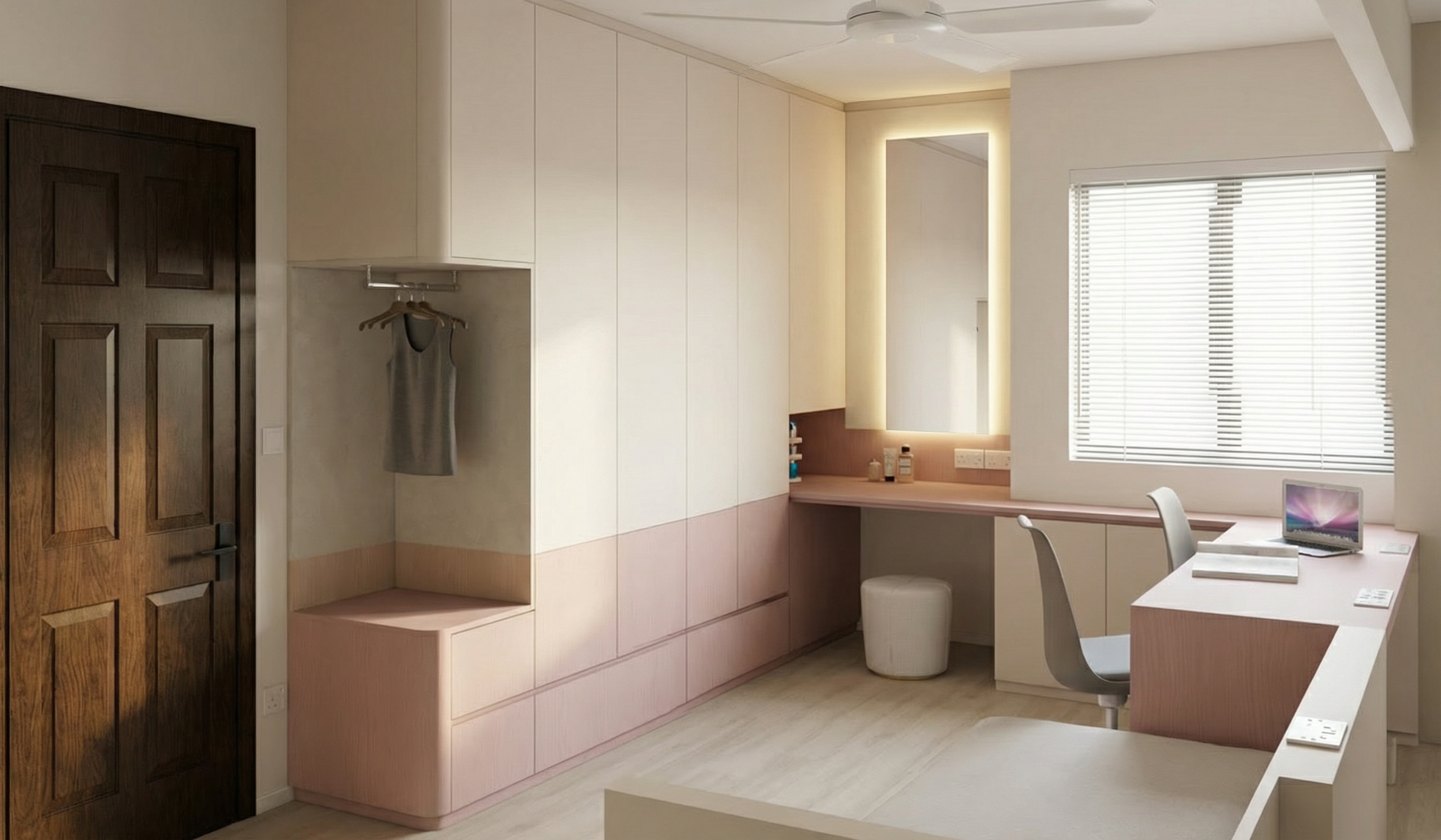 transform this image into an ultra realistic 3d photorealistic render preserve the exact original perspective camera angle proportions composition and geometry without any distortion or structural changes critical constraint do not change the colors materials or material types in the scene everything must remain exactly as in the original image only improve rendering quality and realism materials may be refined only in terms of physical realism pbr lighting response reflections micro light interaction but must remain identical in type texture and appearance no material replacements or reinterpretations are allowed create a warm hotel chic atmosphere with an elegant refined interior feel the mood should be luxurious and comfortable but natural and balanced ensure the image does not become overly orange or yellow tinted keep a neutral warm realistic color balance similar to high end architectural photography apply soft controlled lighting with low to medium contrast avoid harsh shadows deep blacks or strong highlights maintain smooth tonal transitions and even illumination throughout the space natural stone surfaces may have a subtle realistic reflection but should remain natural and not glossy or mirror like use a professional full frame camera look with accurate exposure and realistic depth of field maintain clean flawless surfaces no dust scratches or damage ensure a high resolution sharp output 8k quality with lifelike colors and premium interior render quality do not redesign the space in any way no stylization or artistic reinterpretation only enhance realism of the existing scene