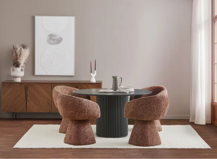 add light hardwood floors remove area rug change table to brown colour remove sideboard
