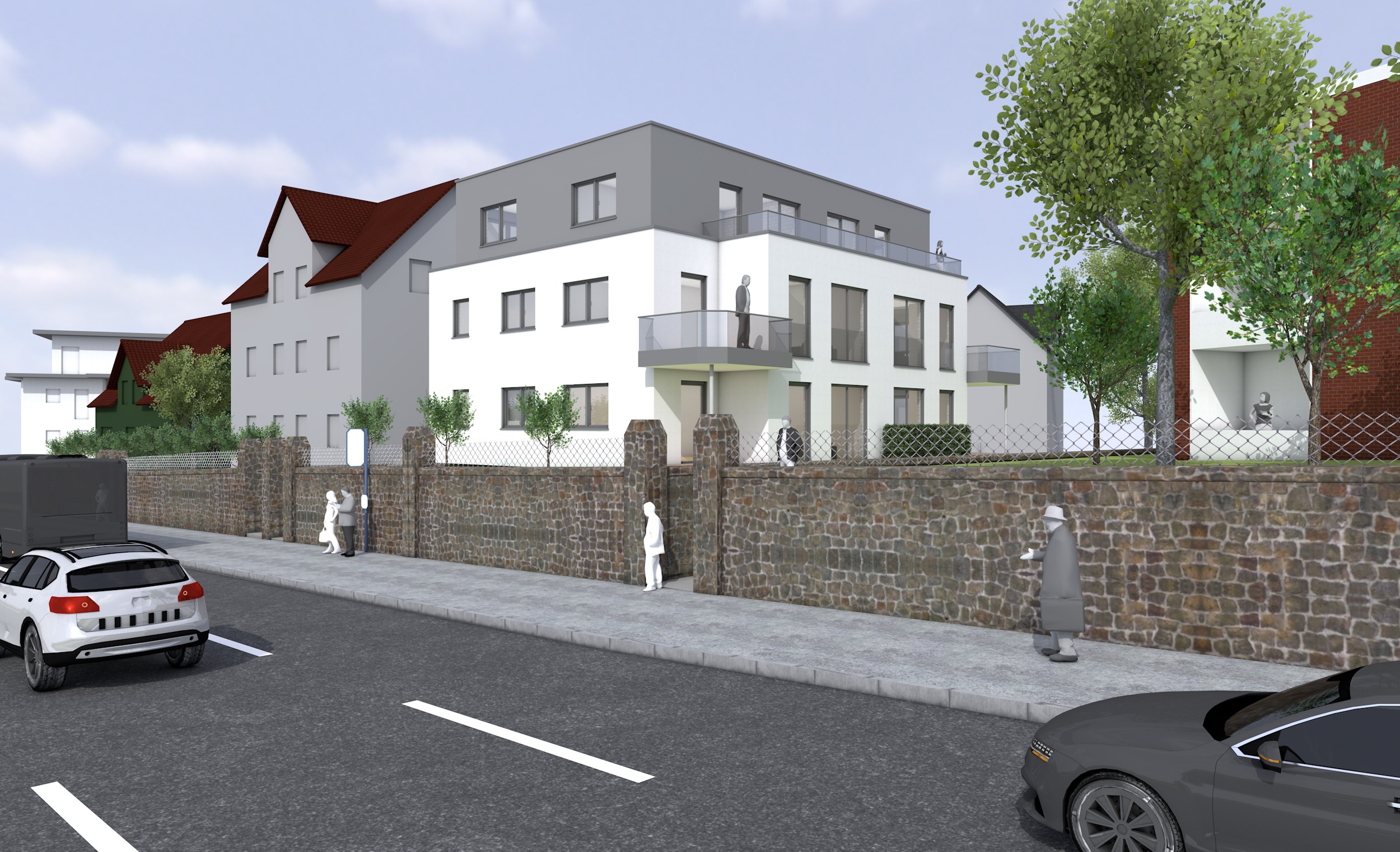 white windowframes sunshine main facade in color light grey