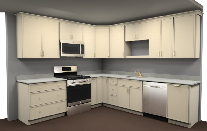 hyper realistic architectural visualization render 8k resolution ultra detailed photoreal quality preserve the exact original design layout and spatial configuration do not move remove or alter any existing objects cabinetry furniture sanitary ware or architectural features maintain all dimensions proportions and placements exactly as designed cabinetry all cabinets upper and lower feature a slim shaker door profile with a dove off white finish slim shaker narrow frame clean modern proportions color must remain a consistent dove off white across all cabinetry do not change door style proportions or finish no color shifting no warming yellowing no cooling blue tint enhance subtle depth and richness while keeping the tone true and uniform lighting soft even natural daylight filling the room combined with subtle downward facing ambient lighting create gentle shadows soft highlights and realistic reflections avoid harsh contrast or color casting materials realism enhance texture clarity and material definition while maintaining true to life finishes cabinet surfaces should have a smooth painted finish with soft light diffusion not overly glossy walls smooth white wall surface with a consistent light neutral wall covering that complements the cabinetry without introducing new tones accents refined brass highlights with polished clarity and realistic reflections not overly glossy staging add a minimal number of tasteful high end staging objects light decor greenery simple kitchen accessories that elevate the scene without cluttering or altering composition do not remove or replace any existing elements overall mood warm inviting luxurious realism with enhanced depth subtle contrast and balanced tones while keeping the entire scene exactly as originally designed camera architectural interior perspective natural lens no distortion clean and balanced composition