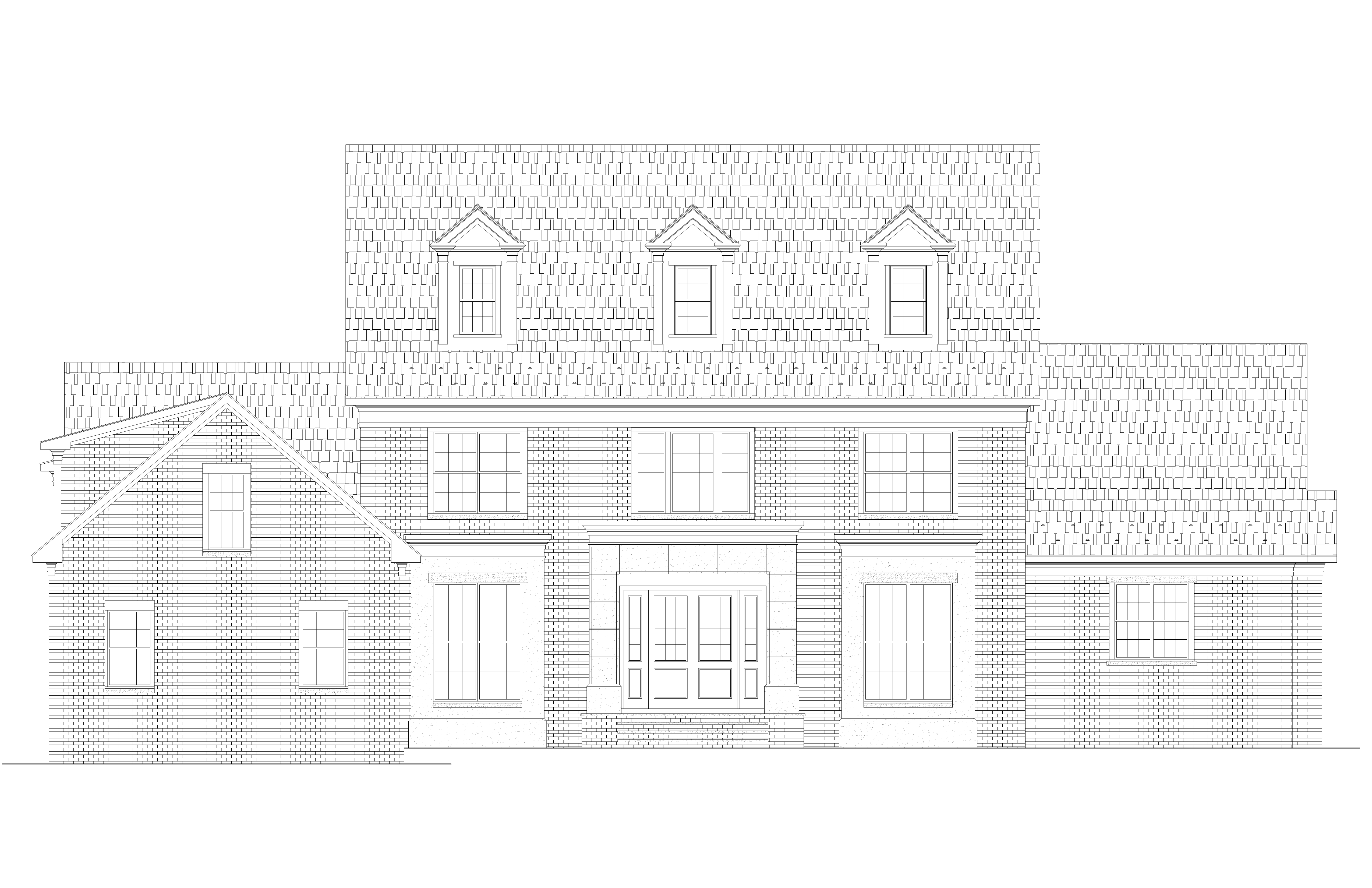 render a beautiful classic brick house with a welcoming atmosphere use cream colored bricks for the walls giving it a warm and inviting feel the roof should be shingled with a deep charcoal gray color adding sophistication paint the window frames and door a crisp white to provide contrast against the brick the front door is accentuated with a rich wooden tone surround the house with lush green grass flowers and trees and add a bright blue sky in the background for a serene ambiance capture the scene in soft natural sunlight illuminating the house s features beautifully the shed dormer will be brick siding to match the front door surround will be limestone to match the flanking windows