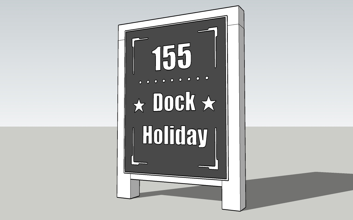 white and black large yard sign sign itself is 3 feet wide place sones around sign with landscaping inside