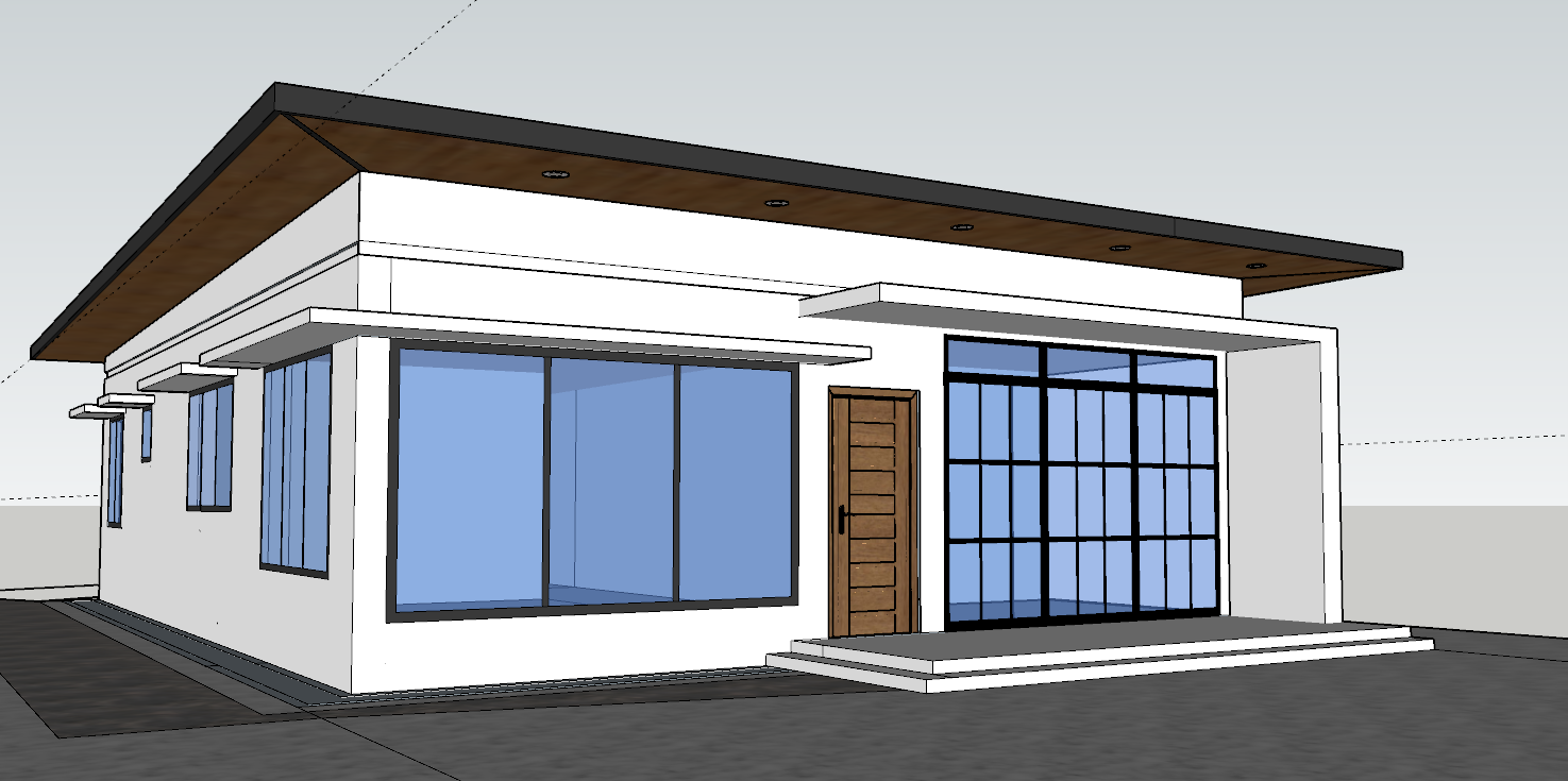 make a render of this 3d image of an exterior of a bungalow house with modern asian style