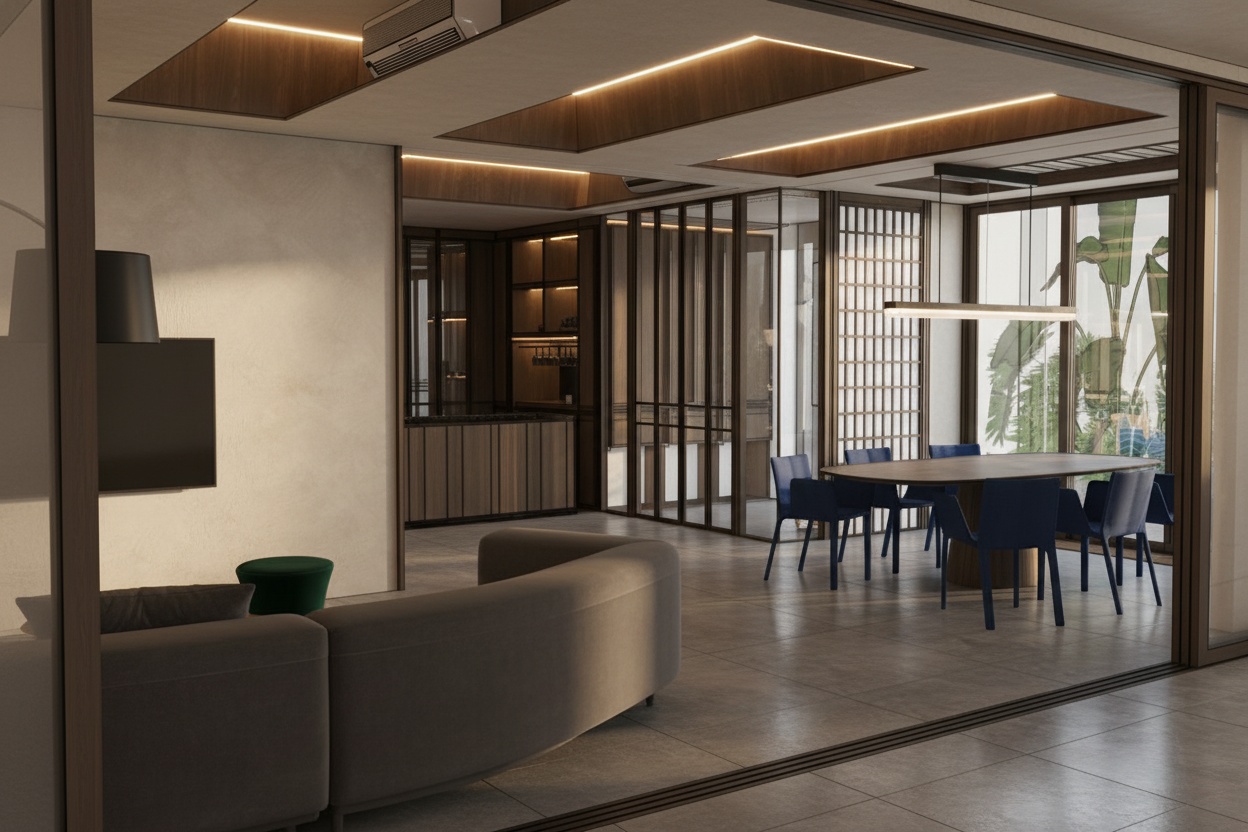 goal ultra photoreal product render treat uploaded drawing strictly as dimensional geometry reference only hard rule ignore all annotation symbols reference circles plan markers construction guides or line graphics these are not physical features the tabletop surface must be completely clean with uninterrupted walnut veneer there are no circular inlays no discs no surface graphics no veneer patches no tonal variations indicating previous drawing marks table specification exact do not alter geometry 2600mm circle shape 730mm height 25mm thick top top finish polytec natio walnut veneer continuous grain running starburst with a 1600mm inlay in marble must be uniform with no visible insert shapes except cable lids cable management two rectangular cable access lids lids must be fully flush with surface zero shadow gap lid surface finished in identical marble vein direction aligned perfectly with surrounding tabletop no black plastic visible except subtle 15mm brush strip slot no visible perimeter frame around lids base single hourglass base metal powdercoated chrome look silver scene neutral studio soft gradient background realistic pbr materials soft contact shadows camera slightly elevated 3 4 view 40mm lens equivalent no surface markings no added seams no geometry invention no altered radii no extra features tabletop construction rule the tabletop is a single continuous circular slab the surface must be perfectly planar and uninterrupted except for two rectangular cable access openings there are zero circular geometries anywhere in the tabletop design if circular drafting marks exist in the reference image they are non physical and must not influence geometry generation the tabletop must read visually as one monolithic marble plane cable access units two rectangular flip top cable lids lid construction veneered marble panel finish identical marble as tabletop grain direction aligned longitudinally to match surrounding surface the lids must be visually camouflaged within the surface no contrasting black plastic top panel only a narrow 15mm central brush slot visible in black the perimeter gap around lid must be minimal and subtle 1 2mm shadow line only