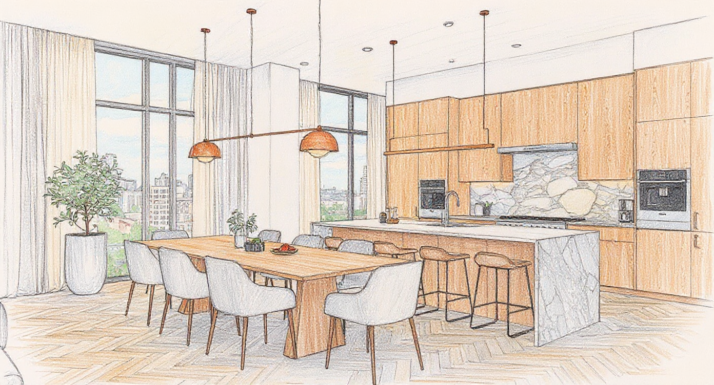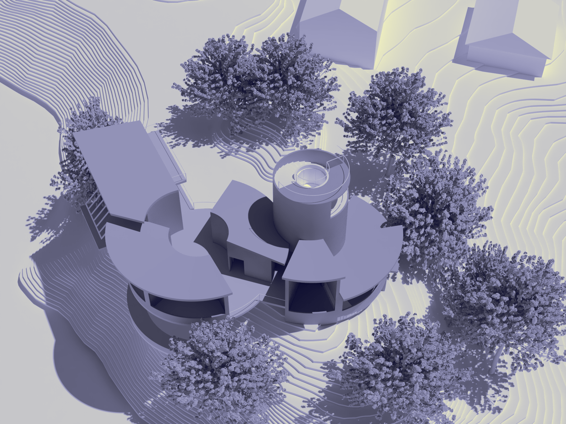 architectural watercolor rendering of a small contemporary research station perched on a rocky cliff structure made of warm wood black steel and glass precise and realistic architectural detailing cantilevered over stone terrain supported by steel beams surrounded by mountain pines and mist below rendered with crisp building geometry and realistic materials background and edges dissolve into loose watercolor washes and white paper edges not full bleed with soft unfinished fade around the image visible pencil and ink linework with light technical annotations artistic yet grounded balance of precision and painterly abstraction calm morning light concept architectural visualization style