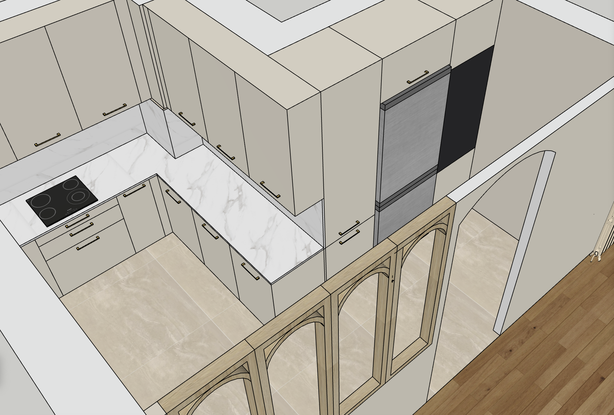 beige travertin tile on the floor light beige kitchen with light marble work plan no mouldings good light