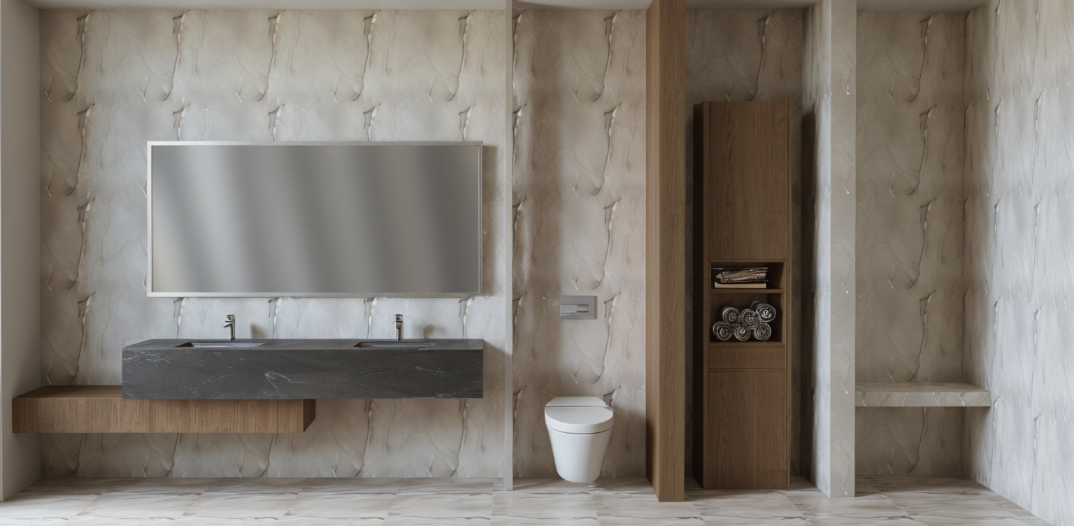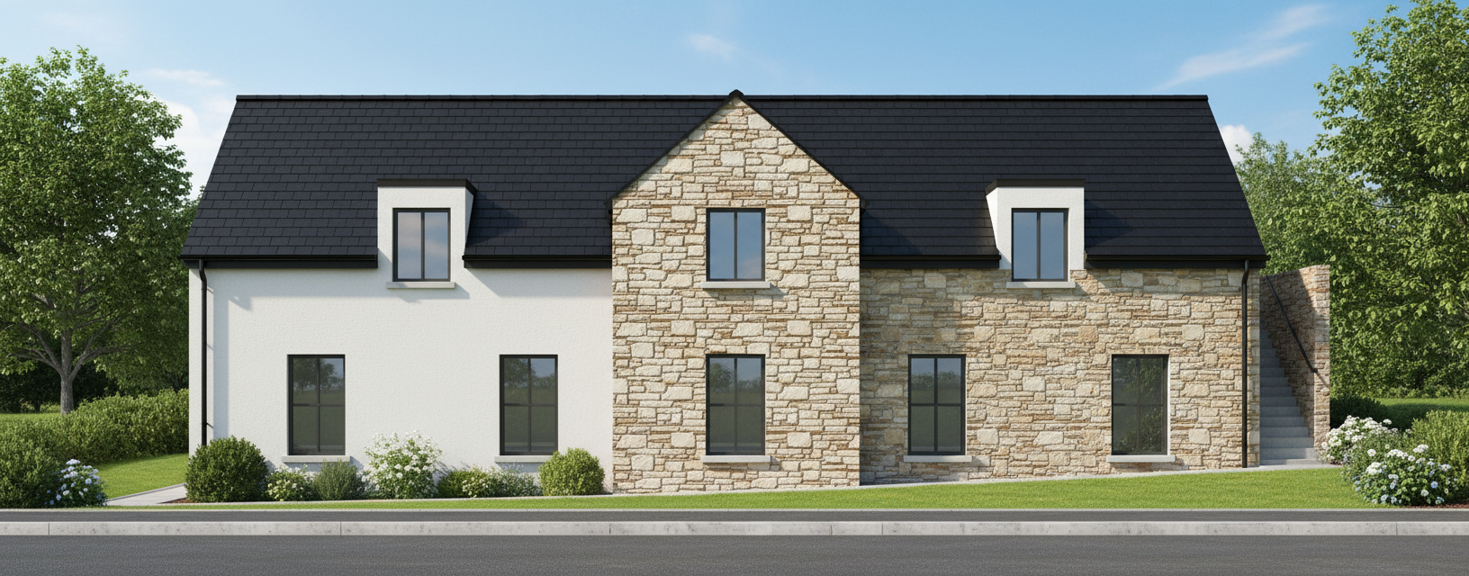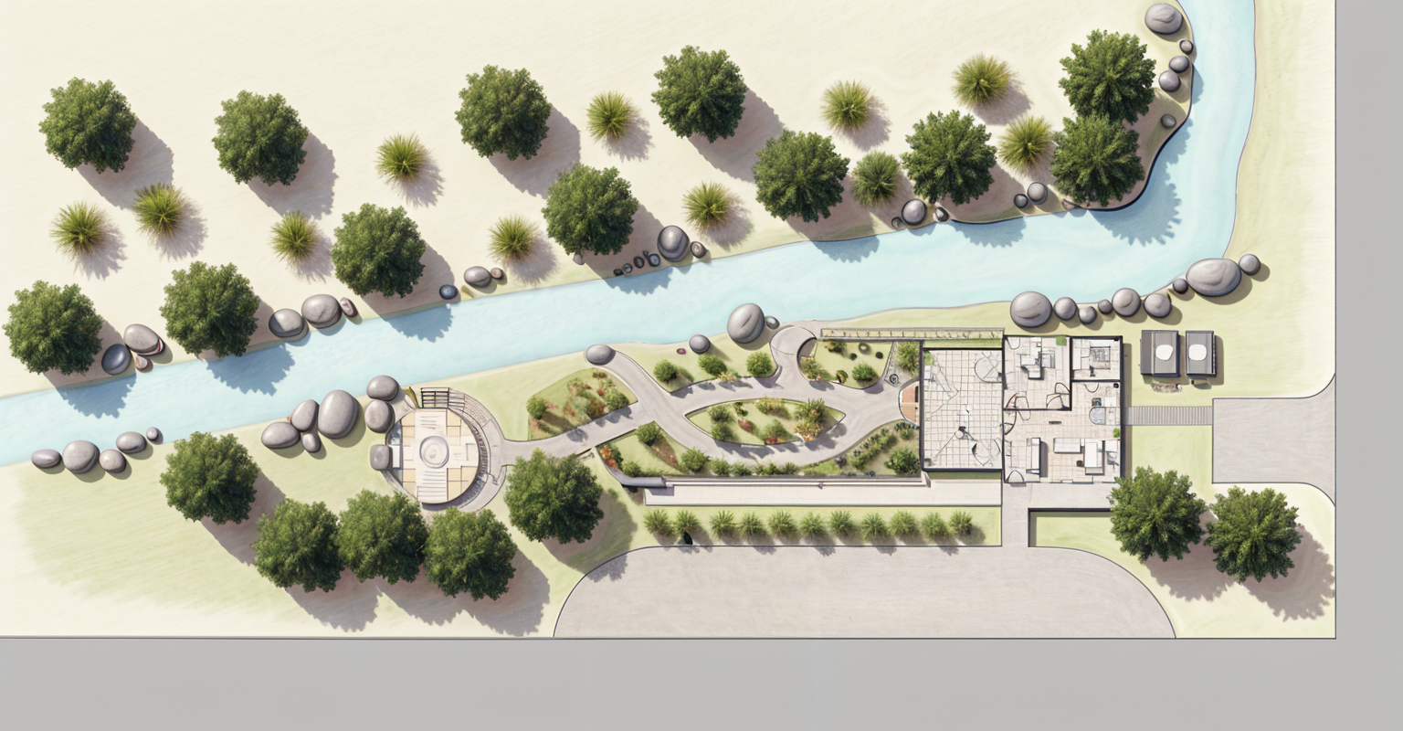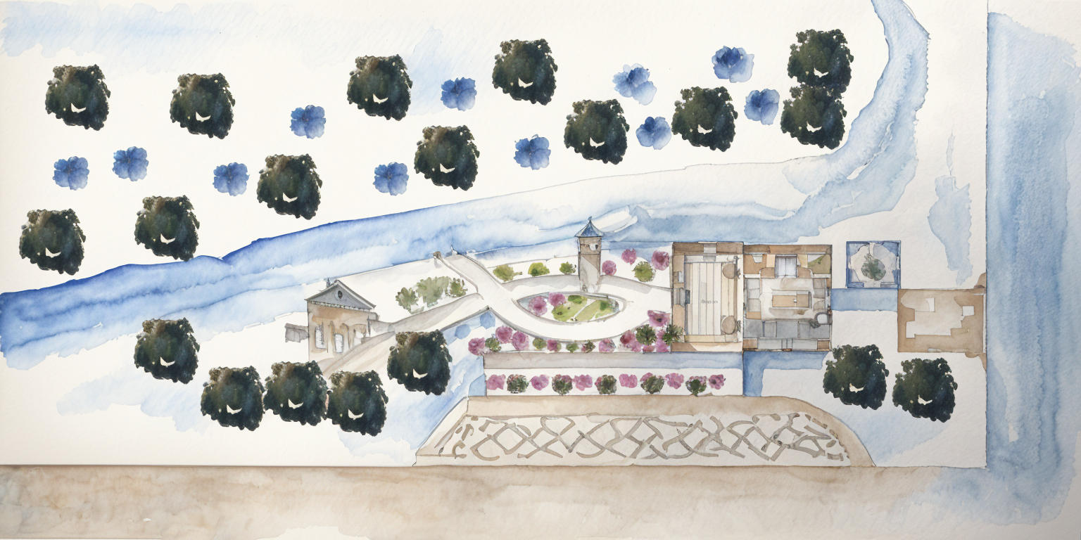 watercolor landscape plan with shadows and occasional rocks along the creek edge