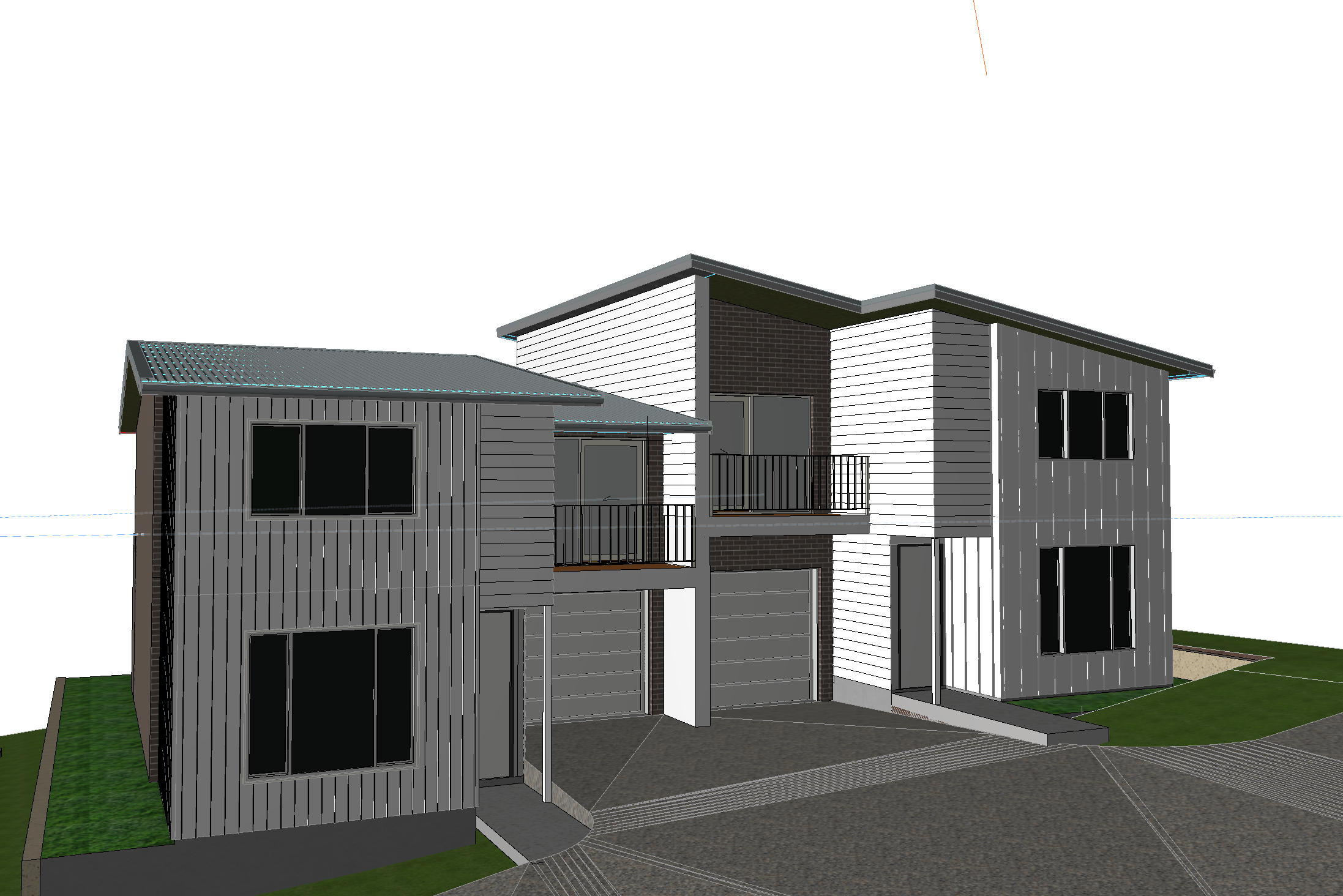transform this archicad image into a high resolution render include landscaping a car and trees in the background