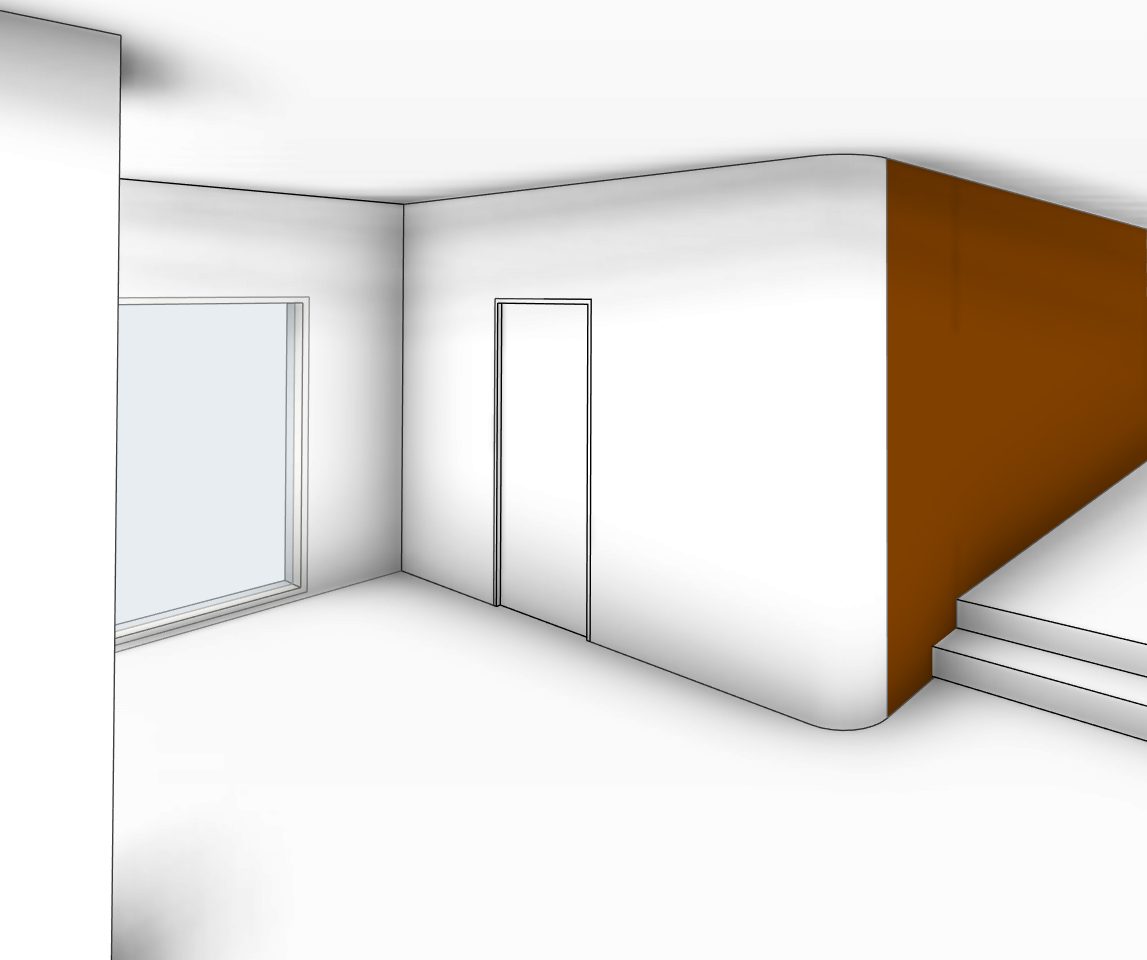 show timber veneer cabinetry in the exact same location as brown wall on the far right hand side of the supplied image do not change any shapes or forms do not add any new elements