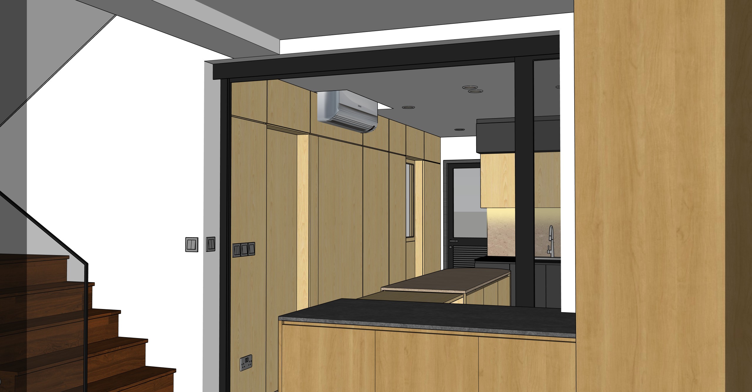 make the wood colours light wood and texture less grains accurate the airconditioner is white