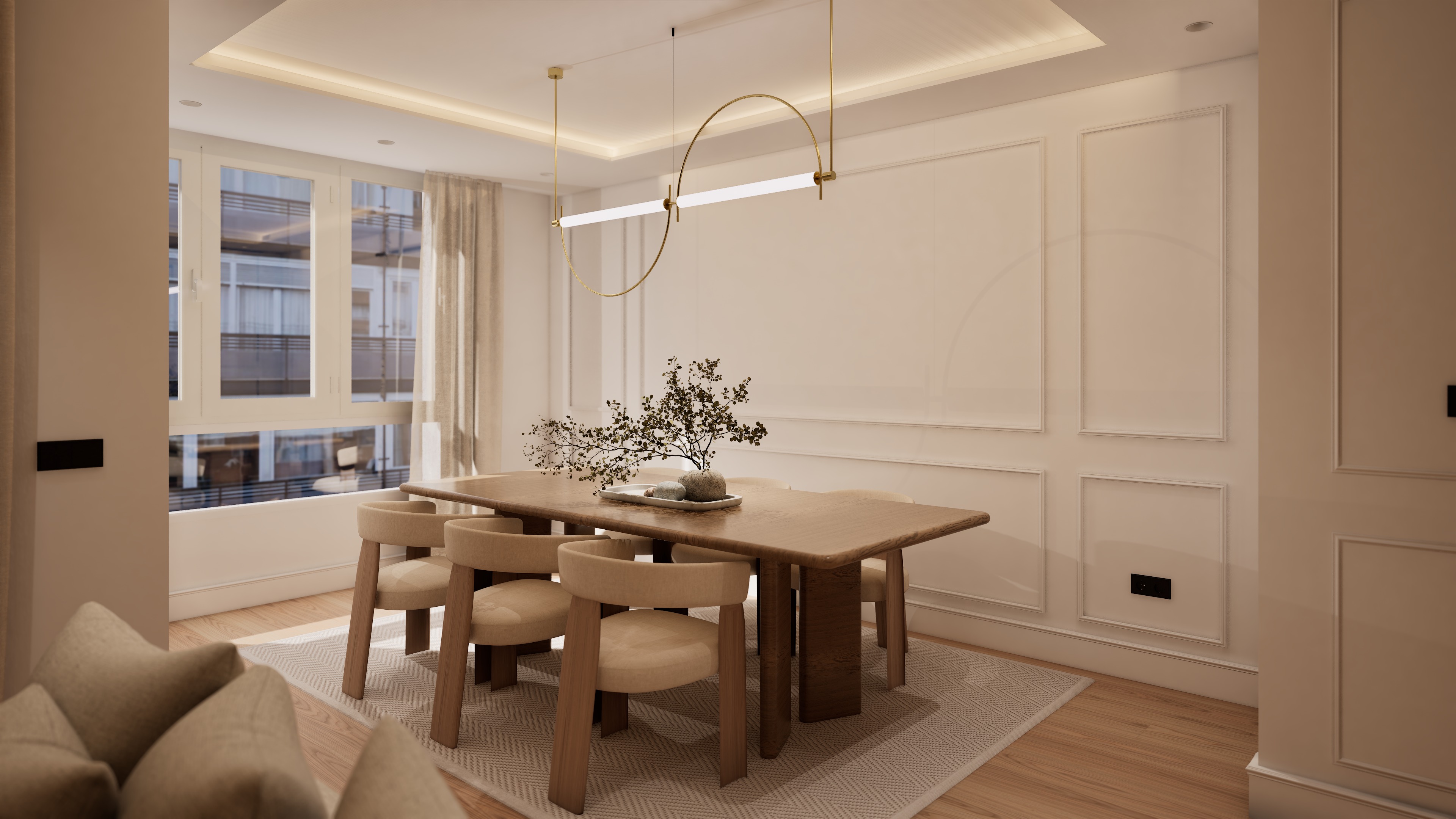 occidental woman with white clothes standing in front of the window closing the curtain