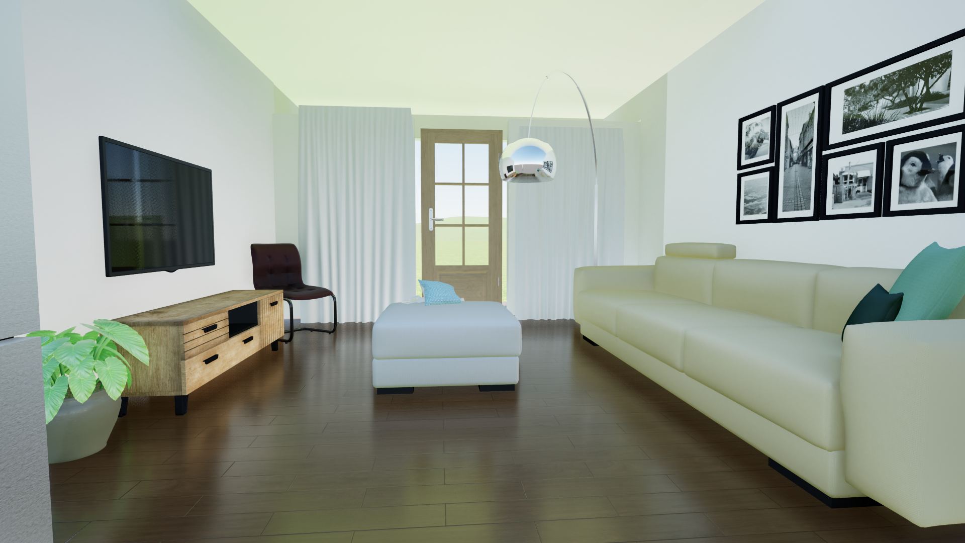 realistic render of living room in a transitional style