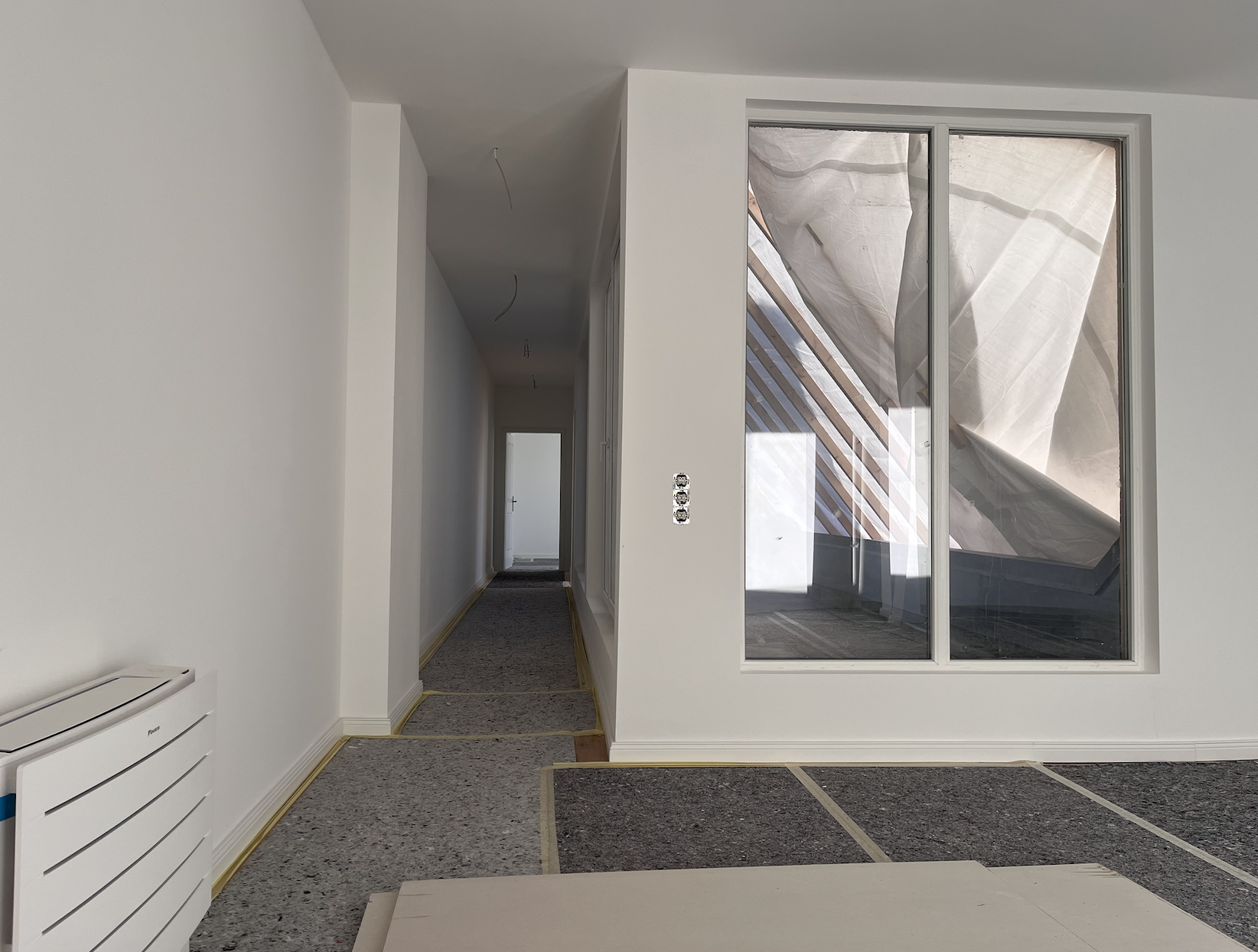minimalism interior shot living room with big terrasse and a coridor architecture