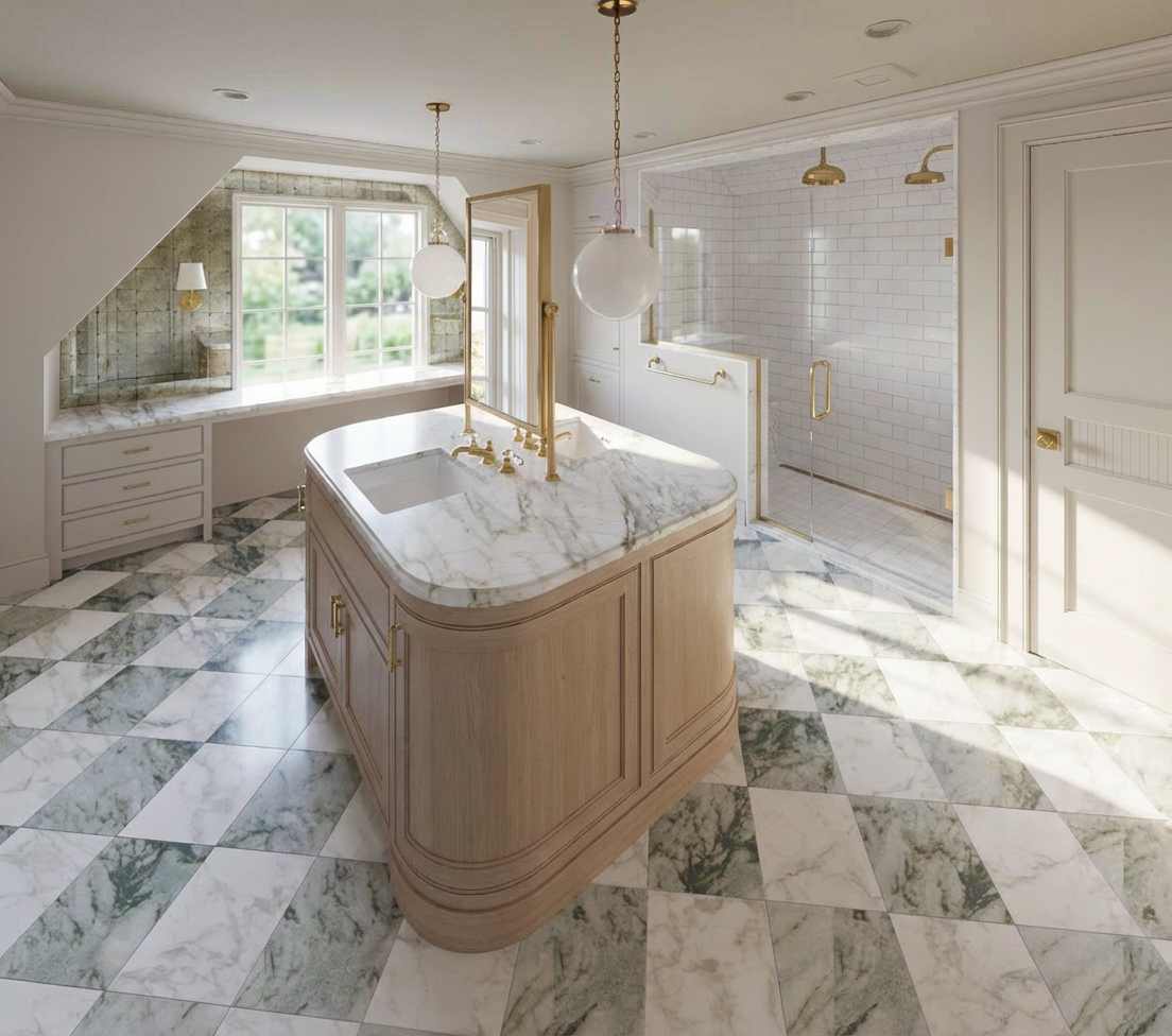 replace shower wall tile with renaissance hydrangea stone waterjet mosaic tile