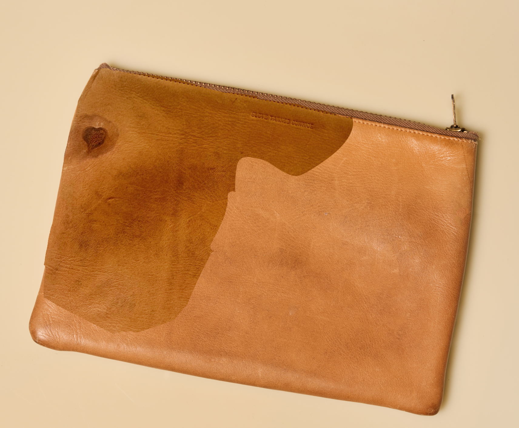 keep this exact same design and on the left side smooth out the colors so that it looks consistent and the same as the right side of the leather