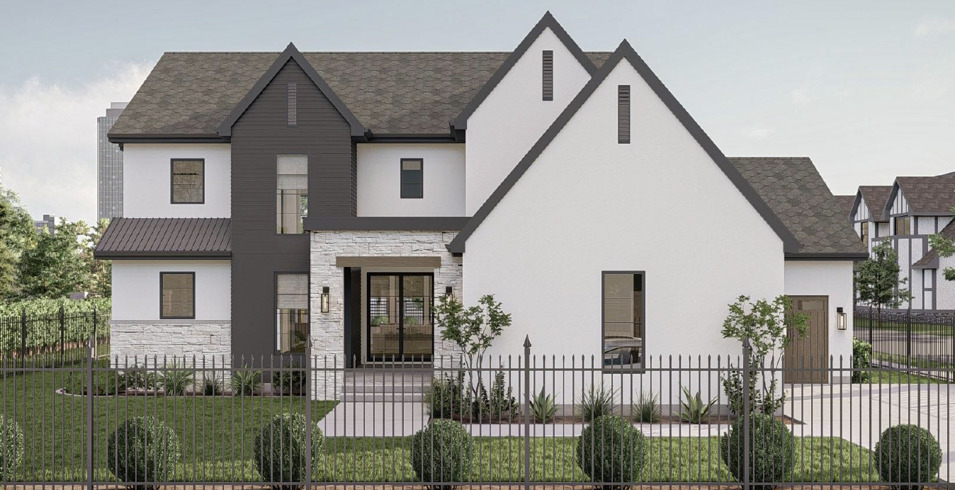 modern exterior shot use more brick and stone white with taupe architecture