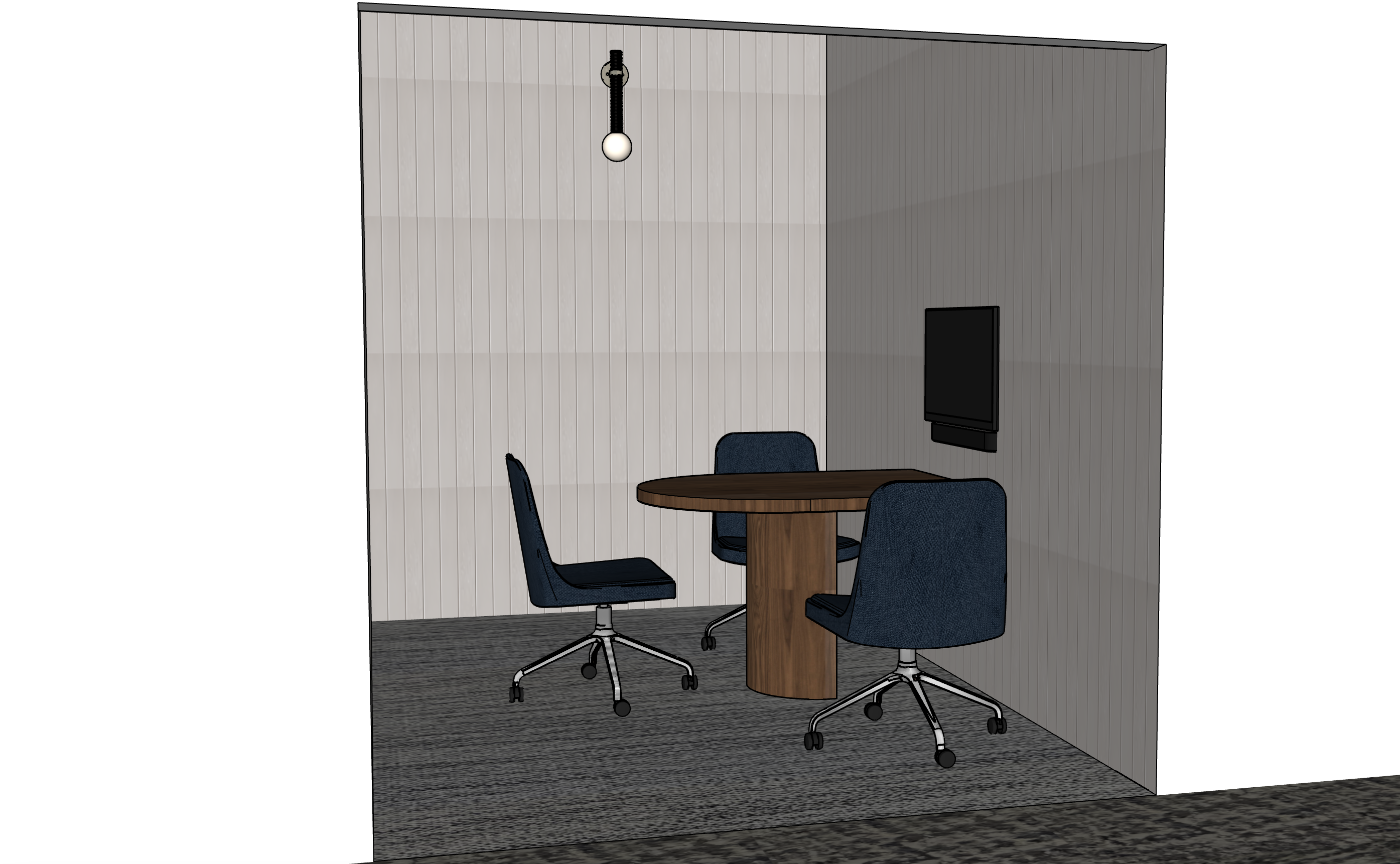 please make the lighting soft even warm and bright keep material as they are shown in the image keep the carpeting as shown in the image there are two different patterns the material on the walls is acoustic tile