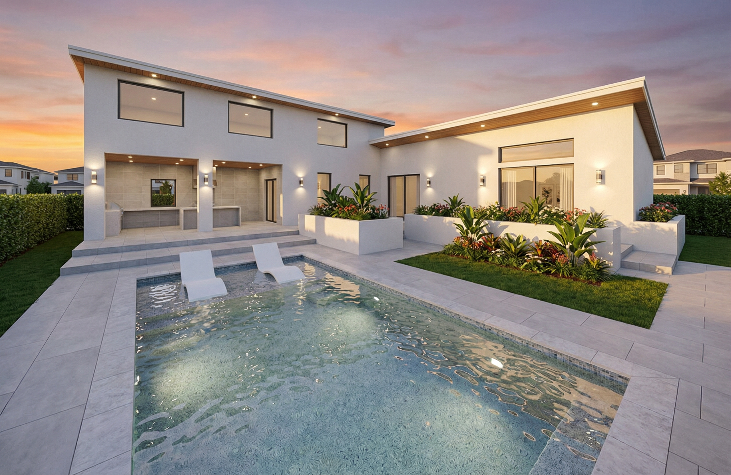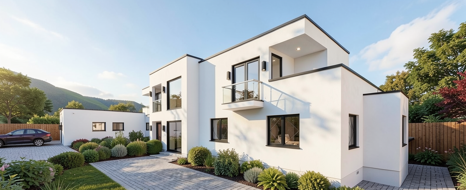 exterior white door and window frames black modern pavers on the ground remove right side background