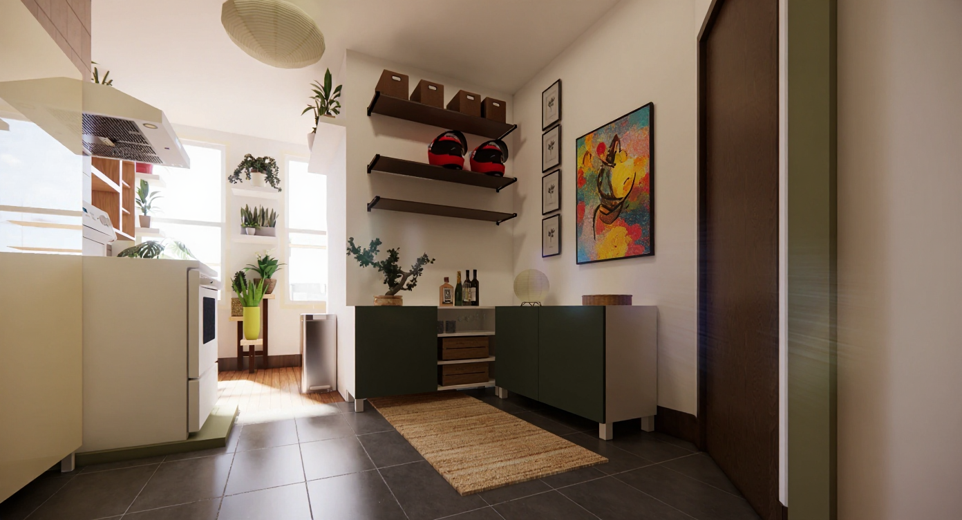 add realistic textures bright light including under cabinet light and staging