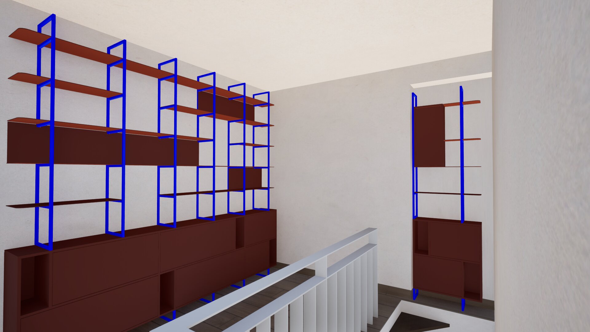 redi l immagine pi realistica luci adatte ci sono due librerie collocate in una casa dai colori chiari ed un parquet che riveste il pavimento sostituisci i colori blu e rosso delle librerie con materiali e colori adatti e conformi all intero contesto