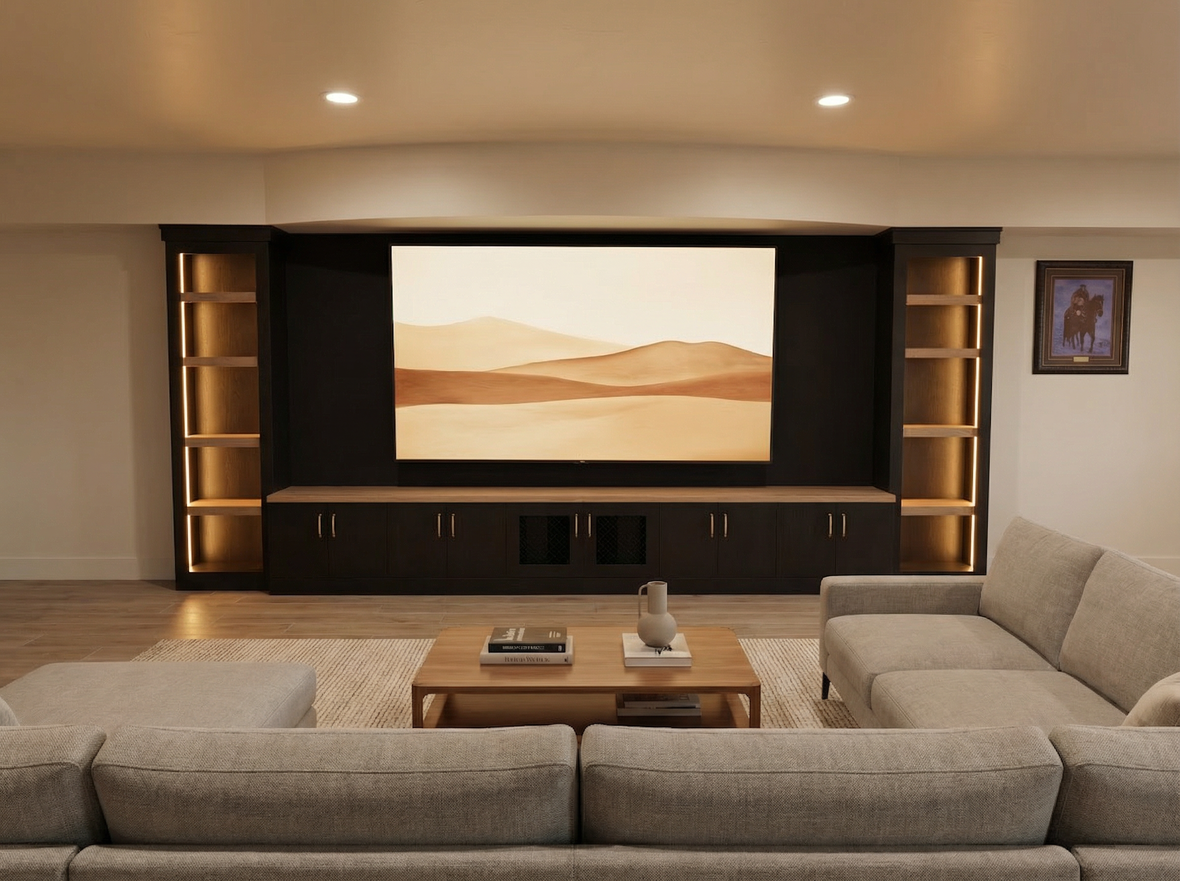 make the wood colours and texture less grains accurate the island is backlit orange the pendant light behind the glass cabinets is norm 69 lamp xx large white