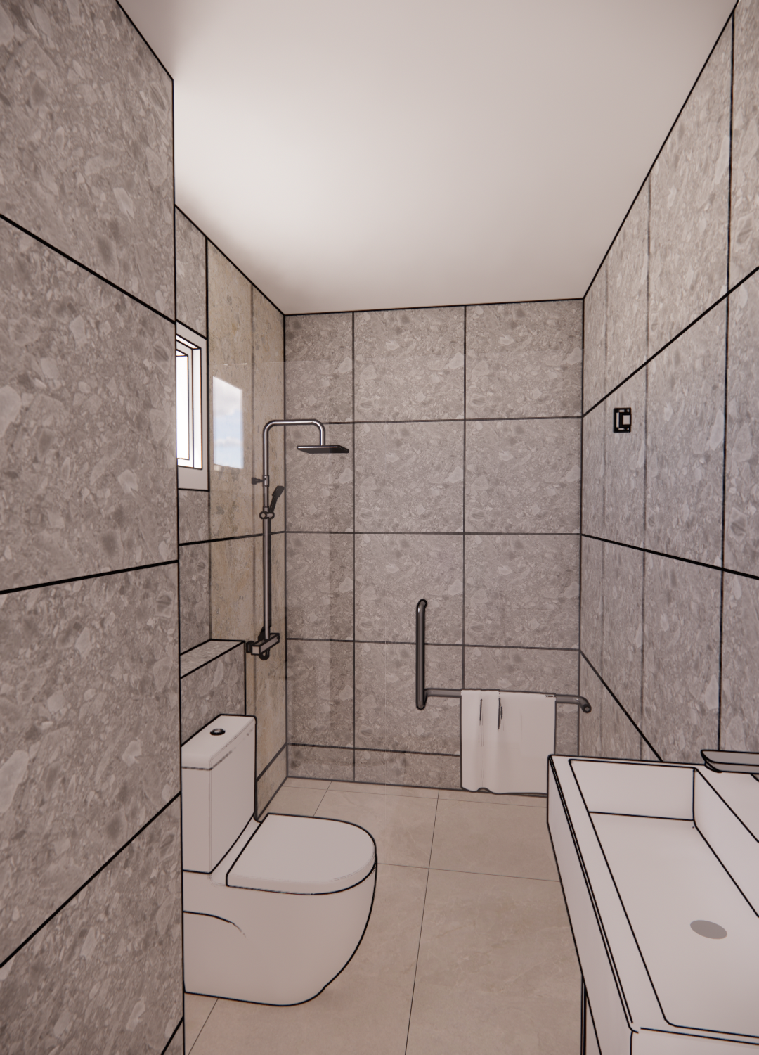 realistic toilet render remove tiles black line polish wall tiles keep material patten