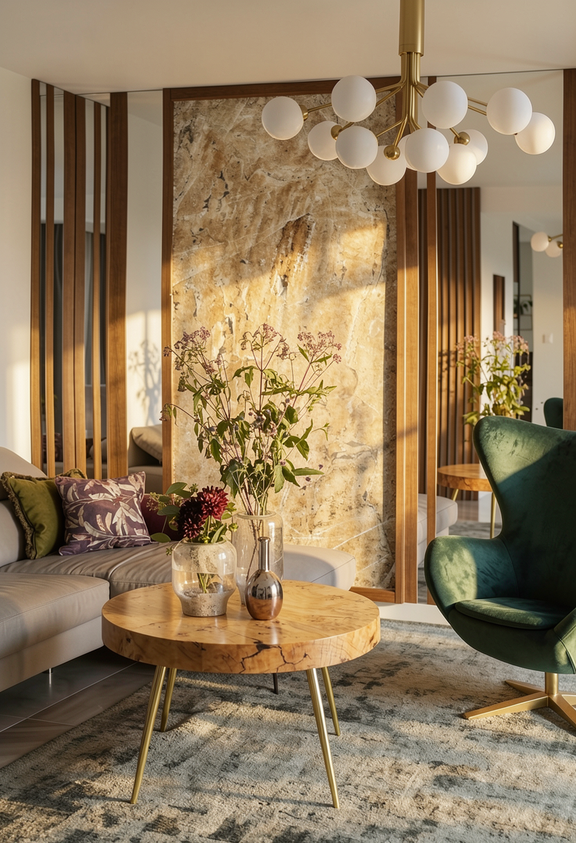 use the existing bathroom photo as the base image keep the pink countertop exactly as is keep the artwork above the tub exactly as is do not replace or alter the painting paint all walls sherwin williams sw 6461 isle of pines paint cabinets sw 6461 paint pony wall sw 6461 paint trim cabinets and walls a dark rich emerald green think art deco remove the light fixtures from side of painting add a brass light on back wall above the painting remove lights from the side of painting make all cabinet and plumbing hard ware to brass leave ceiling white change all hardware and plumbing fixtures to brushed brass frame mirrors in brushed brass replace existing lighting with long vertical brass sconces remove current top mounted mirror lights remove any hanging lights turn all new lighting fixtures on with a warm warm glow replace flooring with small format neutral taupe tile remove trash can remove cat litter box and rug underneath it remove clutter from vanity and pony wall overall style moody cohesive high end editorial bathroom photorealistic materials warm ambient lighting realistic shadows luxury residential finish