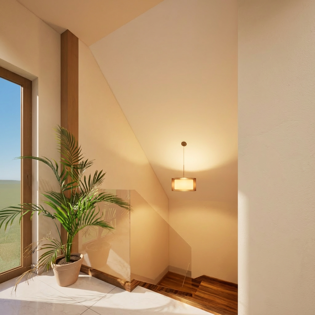 dodaj wisz c lamp nad schodami i lekkie ciep e o wietlenie nie zmianiaj materia w