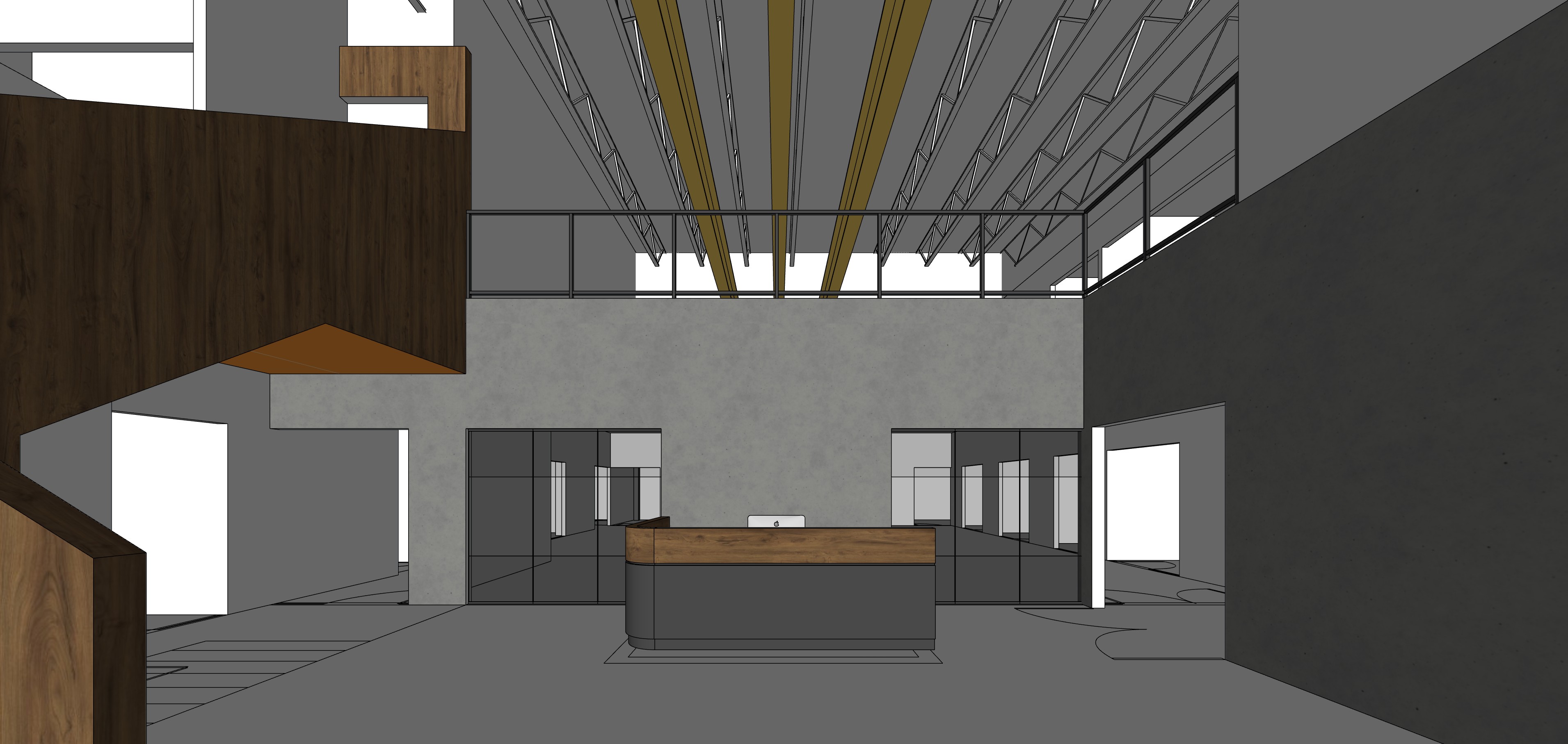 create photorealistic render for atrium of an office
