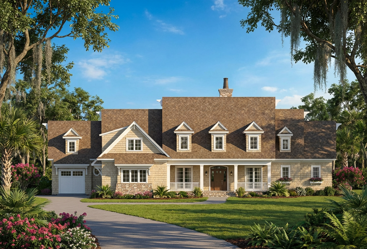 4 story modern condo in downtown waikiki hawaiian landscaping vented concrete at base stucco teak wood trellis on sides colorful painted mural small front yards with concrete walks to stairs warm interior lighting roof decks with vegetation