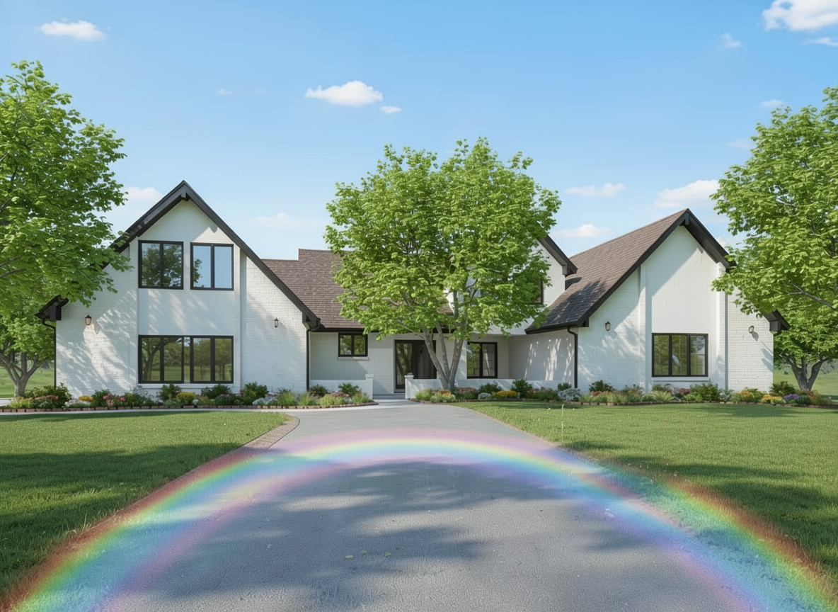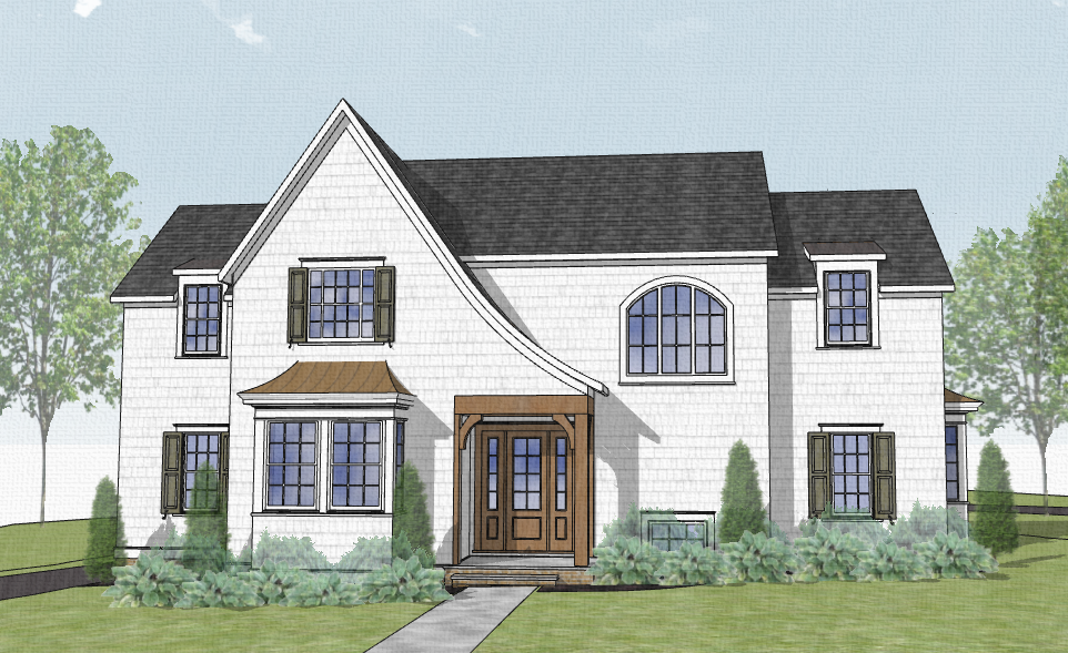 fall warm white shingle siding with full bright landscaping