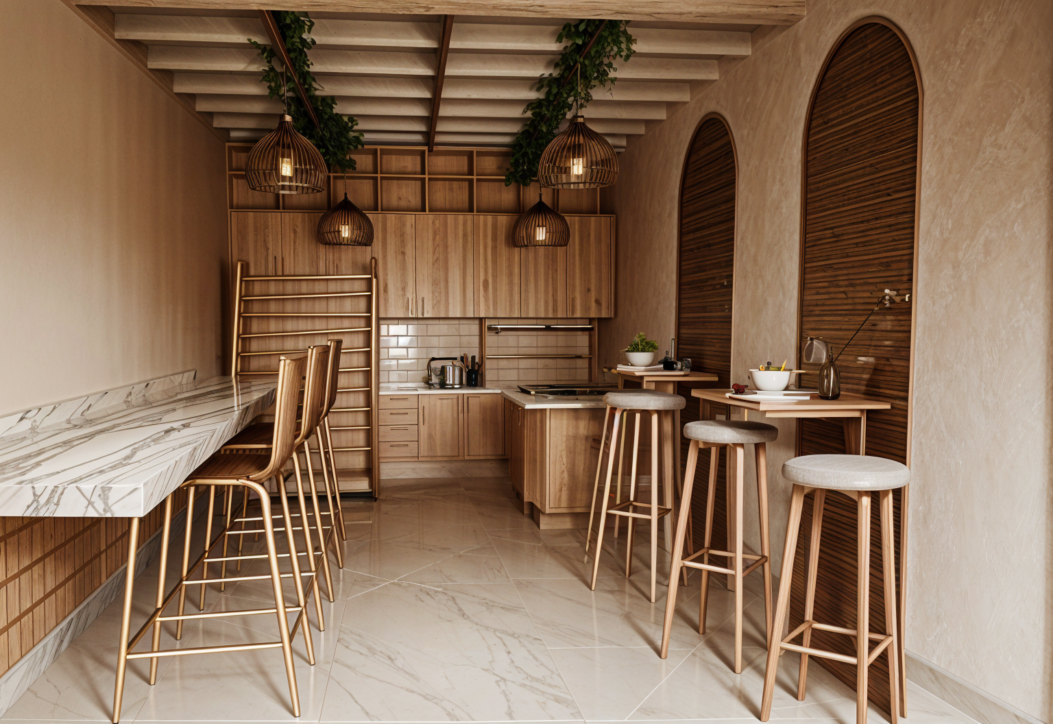 render the kitchen hood on the left with the scene on the right keep the proportions of the image on the left