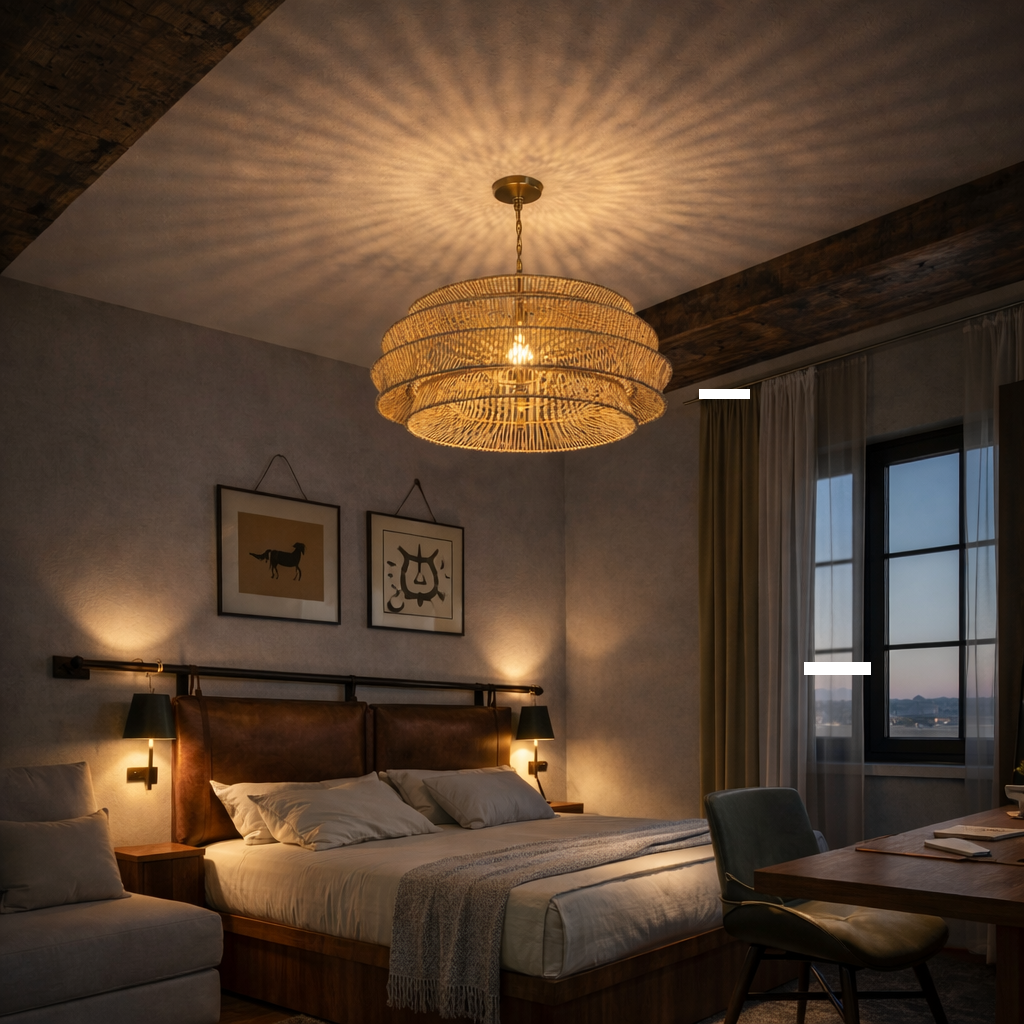 make beams skinner and lighter in color make sofa wider at left of bed